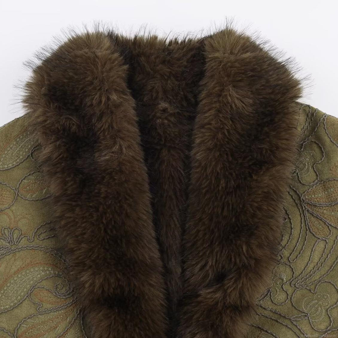 • Women Vintage Paisley Embroidery Faux Suede Jacket With Faux Fur Collar Cuffs Ethnic Loose Short Coat Warm Winter Outwear