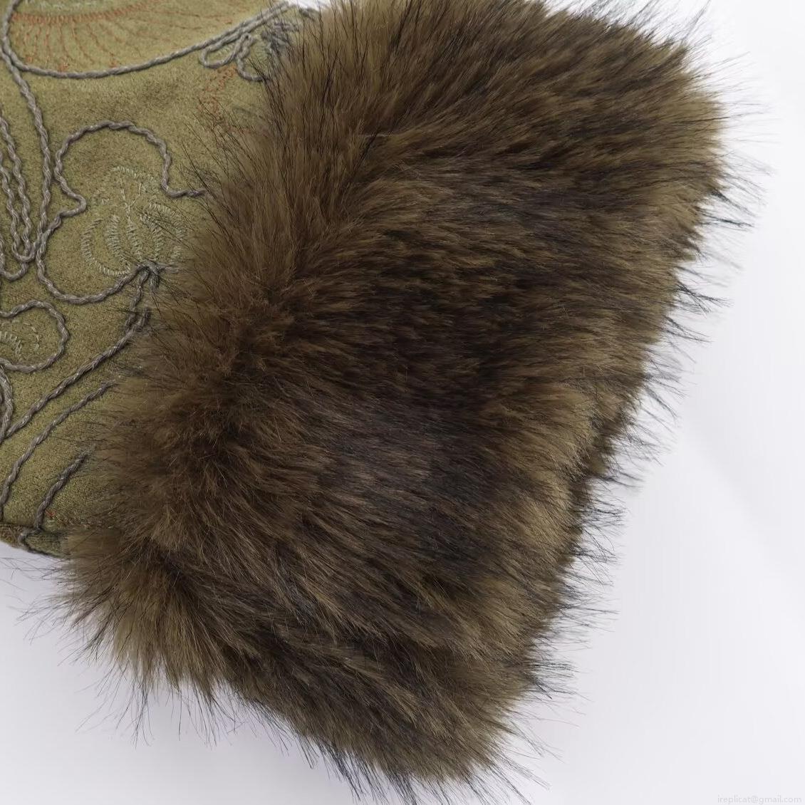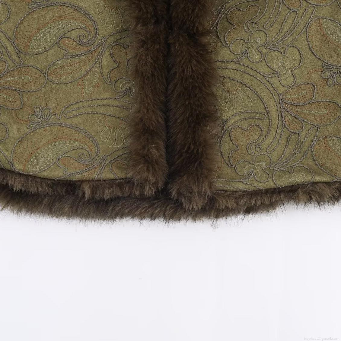 Pocket, Embroidery, Snap Fastener, Paisley Pattern, Plush Collar