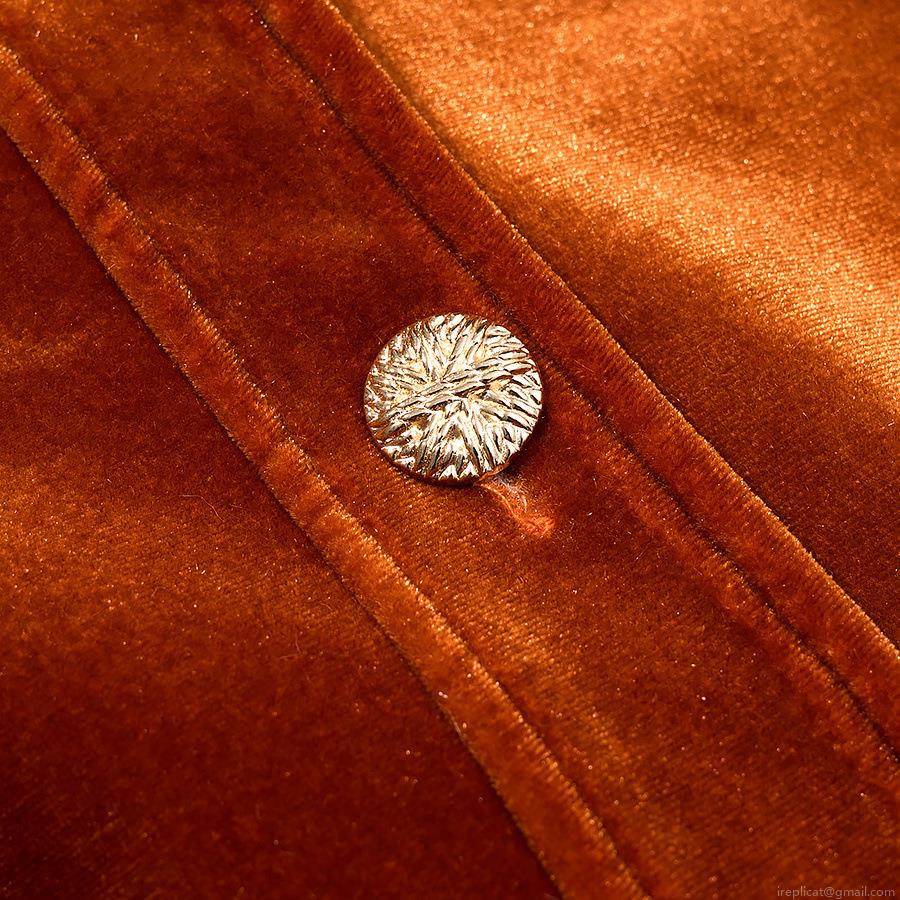 • Women Vintage Velvet Short Jacket With Metal Buttons Fashion Caramel Long Sleeve Loose Fit Outerwear Coat For Autumn Winter