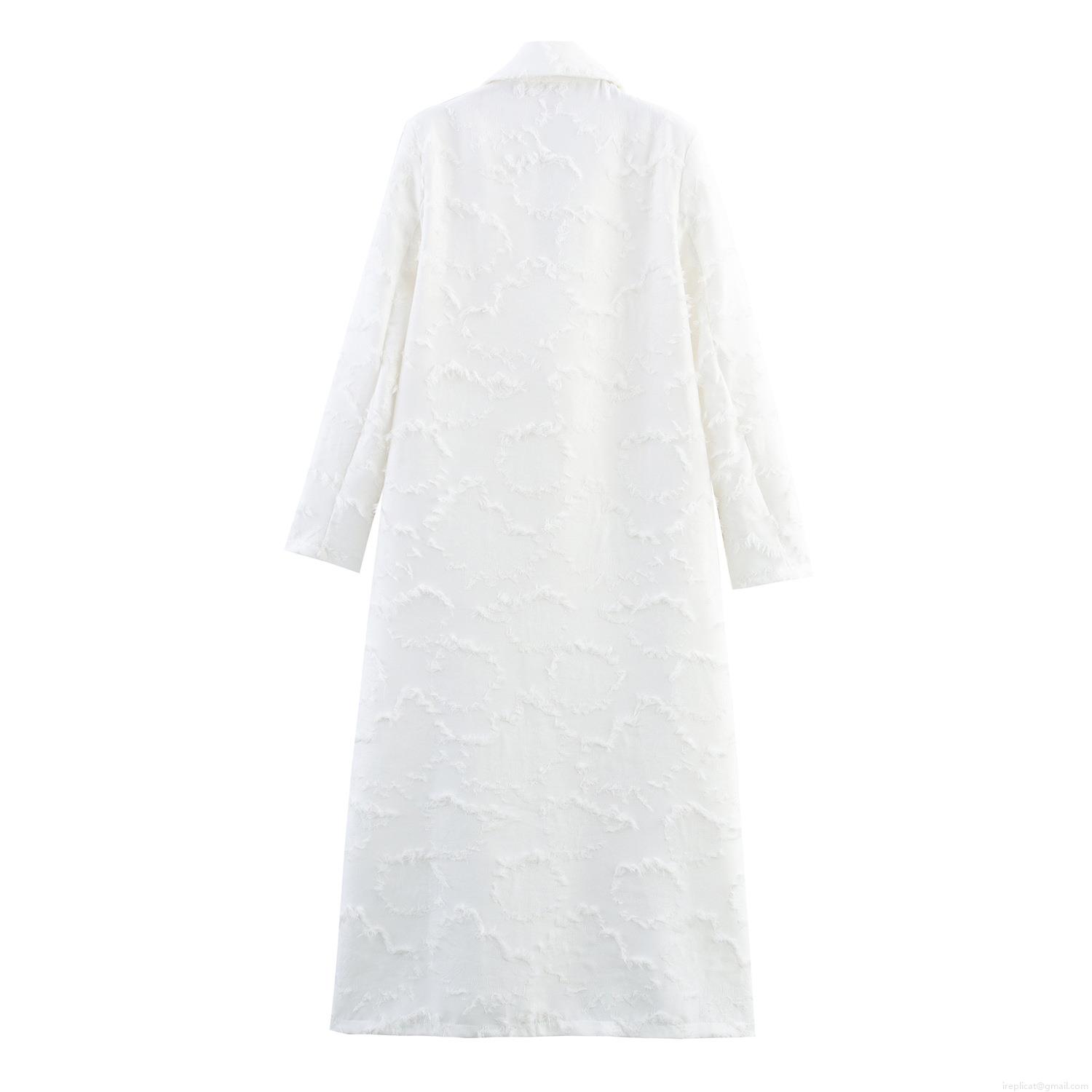 • Women White Extra Long Trench Coat With 3D Texture Tassel Fabric Double Breasted Blazer Collar Long Sleeve Outerwear For Autumn Winter Office Lady