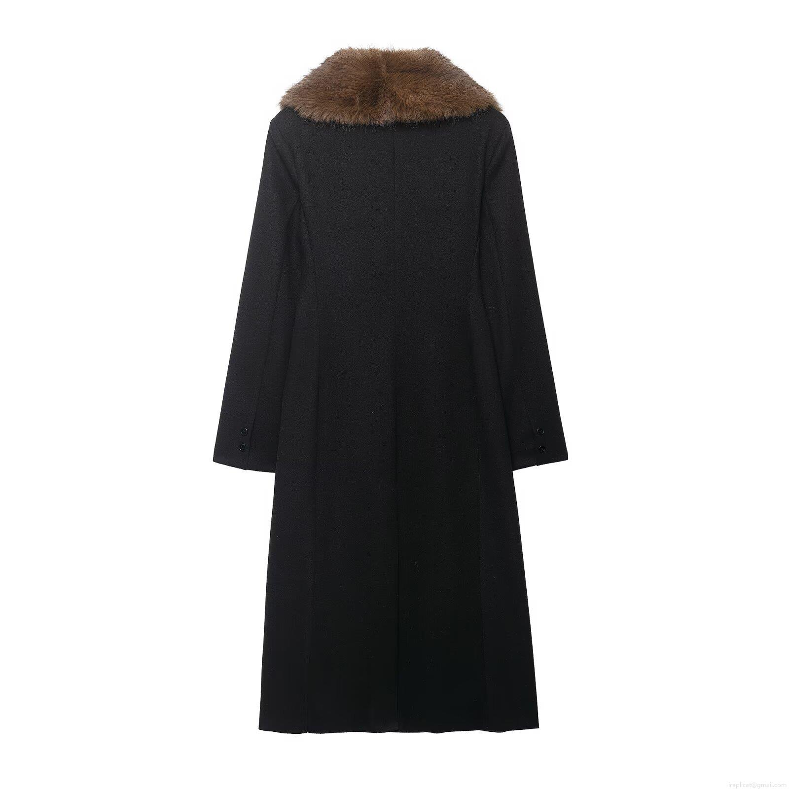 • Women Winter Elegant Long Woolen Coat With Faux Fur Collar Thick Warm Polyester Single Breasted Trench Coat British Style Outwear For Women
