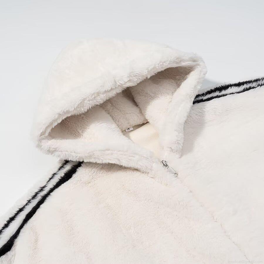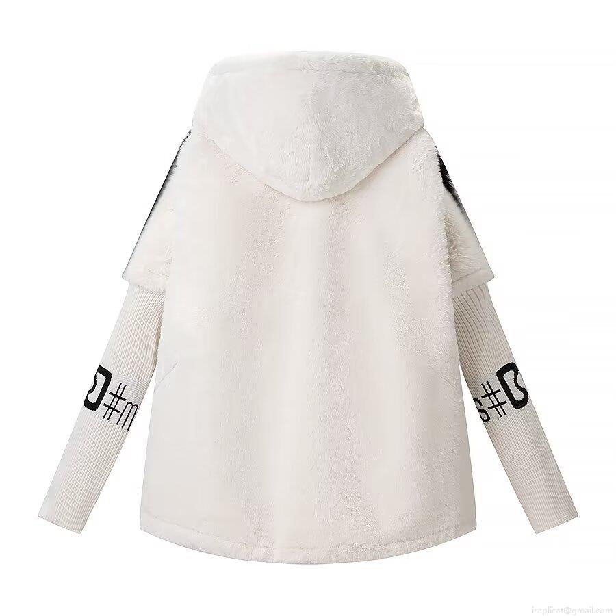 • Women Winter Fashion Faux Fur Hooded Jacket Oversized Patchwork Knit Cuffs Zipper Outerwear Thick Warm Solid Color Casual Streetwear Coat
