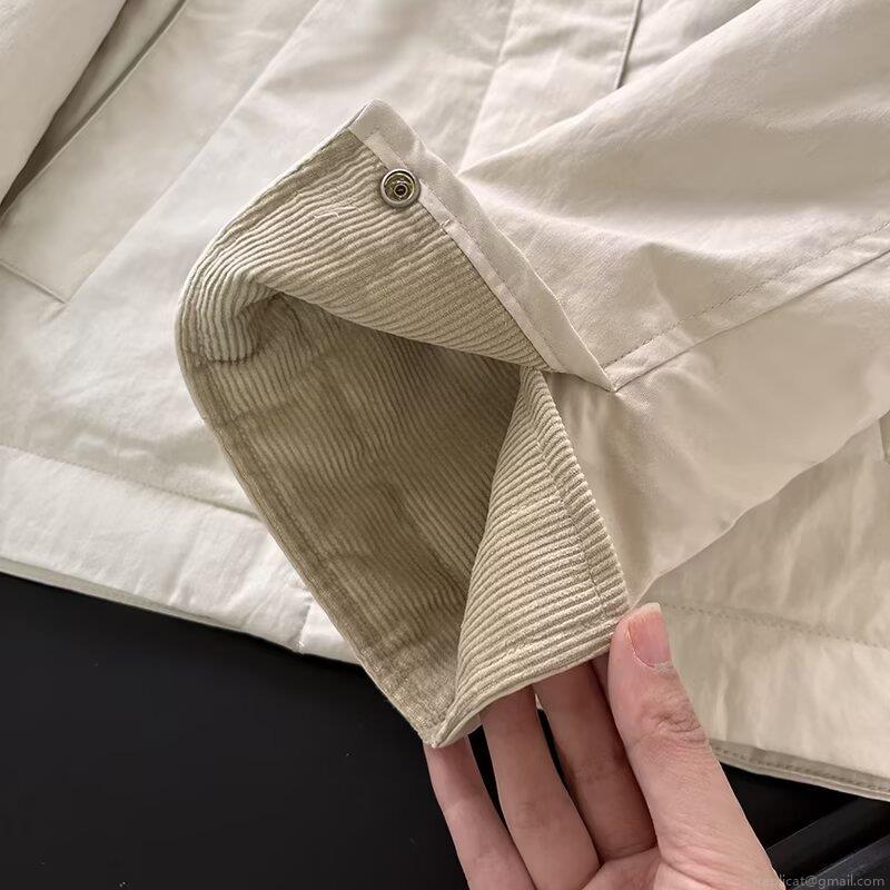 Solid Color, Metal Snap, Checkered (lining), Color-blocked Corduroy Collar, Checkered Hooded Lining