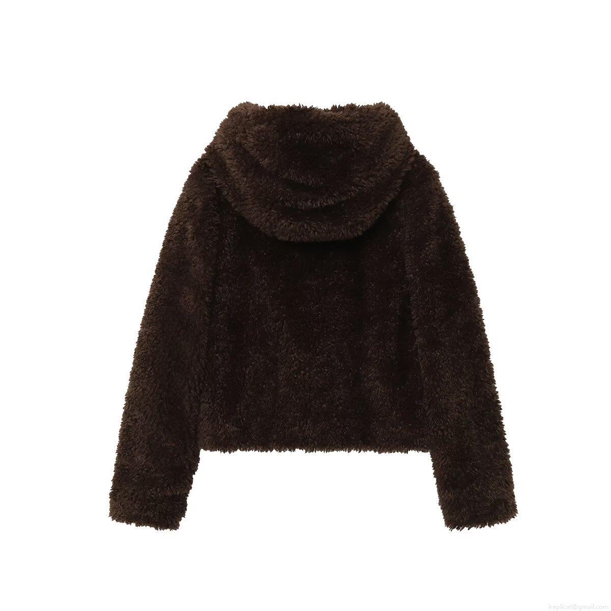 • Women Winter Hooded Faux Lamb Wool Jacket With Toggle Buttons Long Sleeve Solid Color Short Fleece Coat European Street Style Warm Outerwear