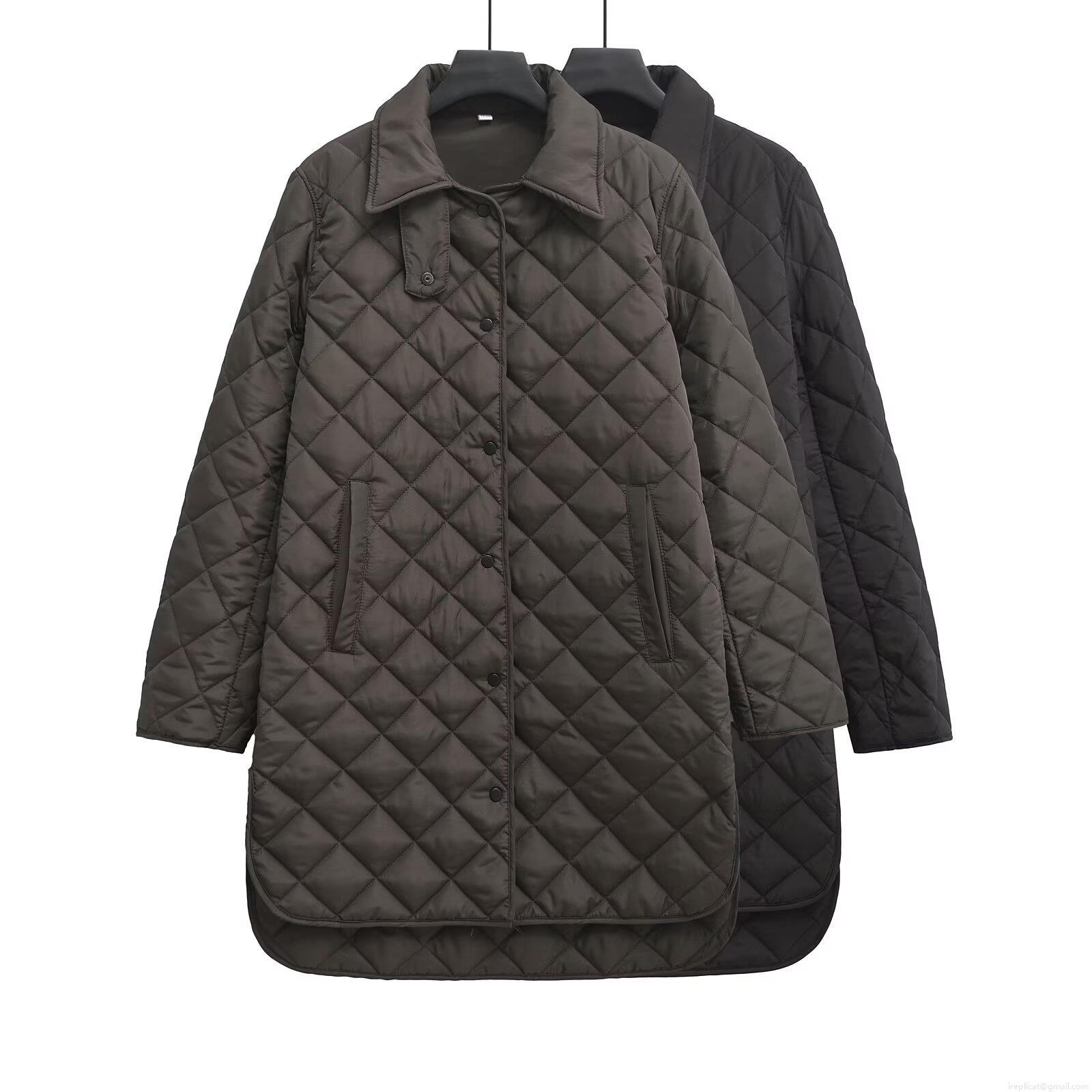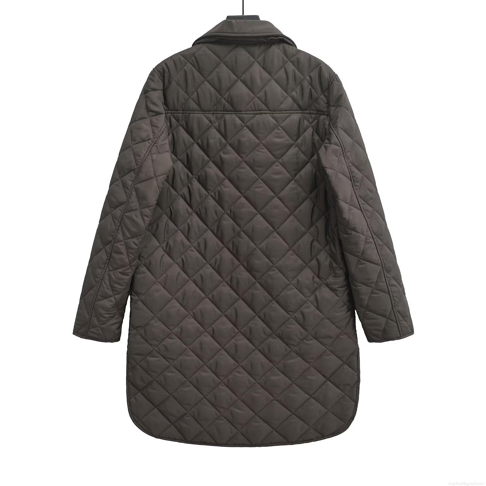 • Women's 100% Cotton Diamond Quilted Long Coat Casual Lapel Single Breasted Warm Padded Jacket Loose Fit Winter Outerwear With Pockets