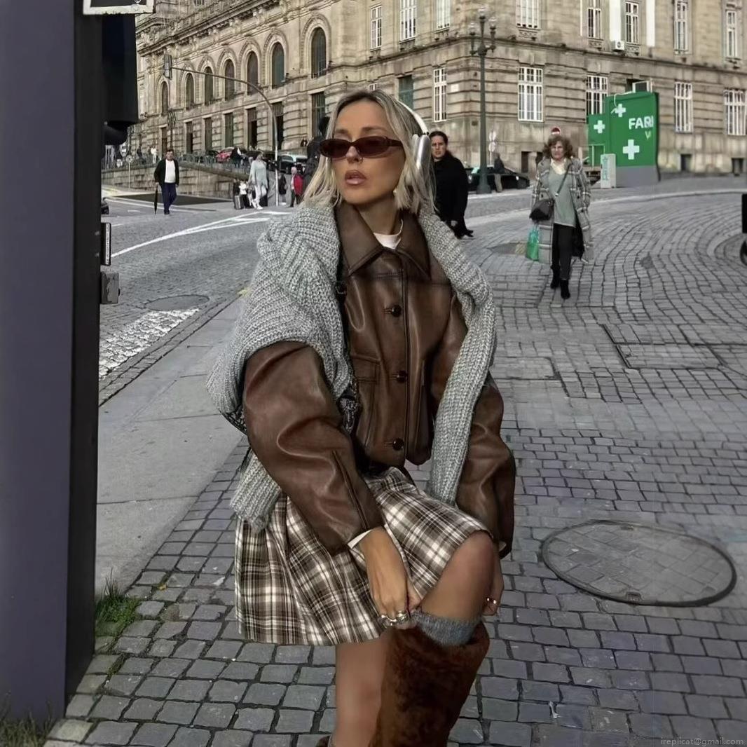 • Women's American Retro Dark Brown Faux Leather Jacket Distressed Oil Wax Moto Style Short Coat Loose Long Sleeve Square Collar Outerwear For Autumn Winter Streetwear