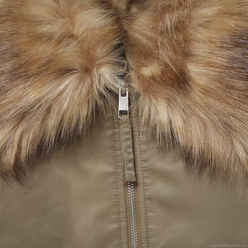 • Women's American Retro Khaki Bomber Jacket With Brown Fur Collar Loose Fit Zipper Windproof Warm Outwear For Autumn Winter Casual Streetwear