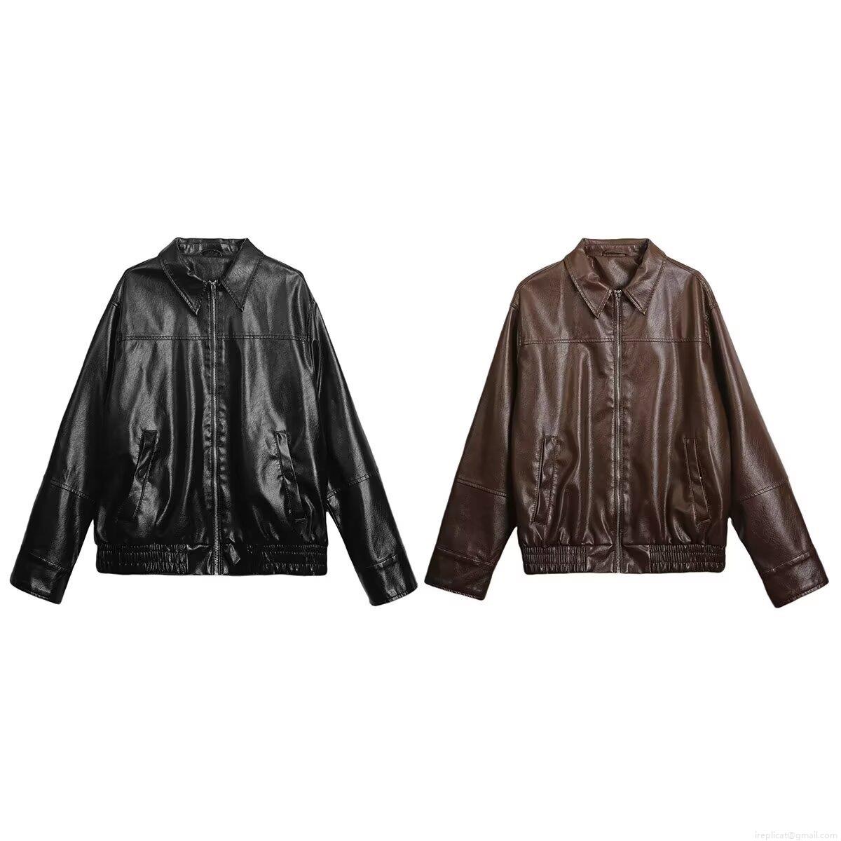 • Women's American Vintage PU Faux Leather Jacket Casual Zipper Lapel Loose Fit Biker Coat Streetwear Outwear For Women Autumn Winter Fashion Windproof Jacket