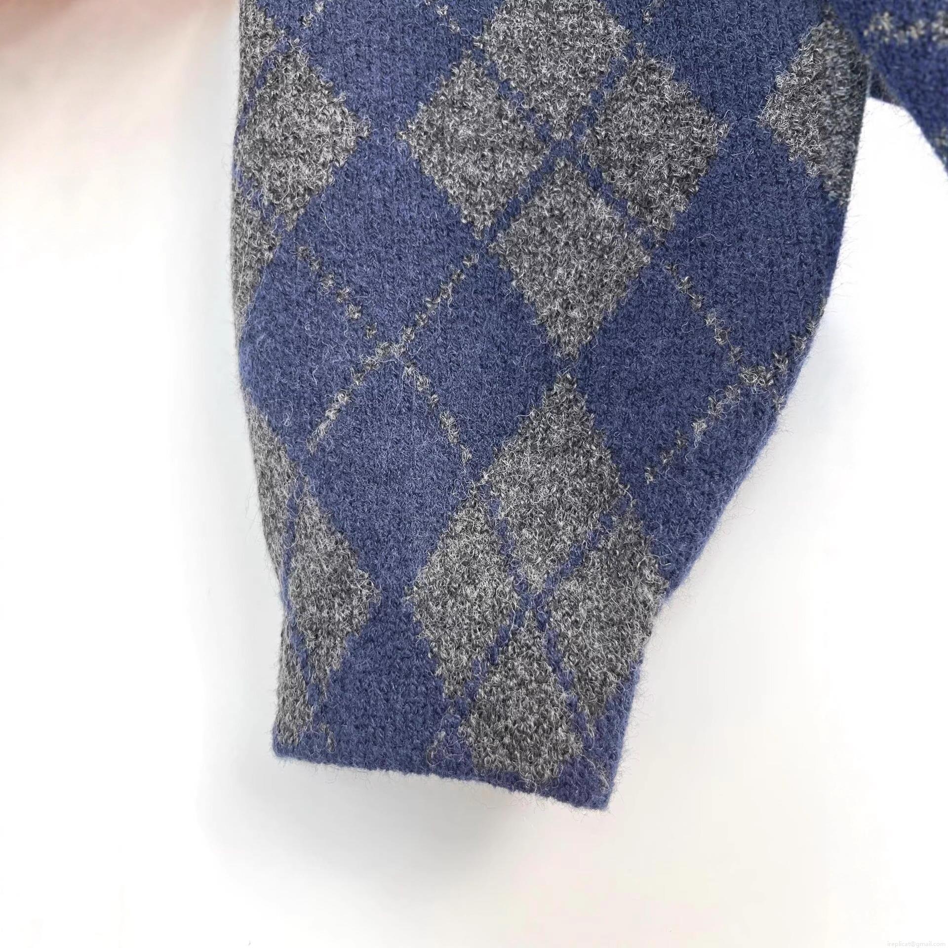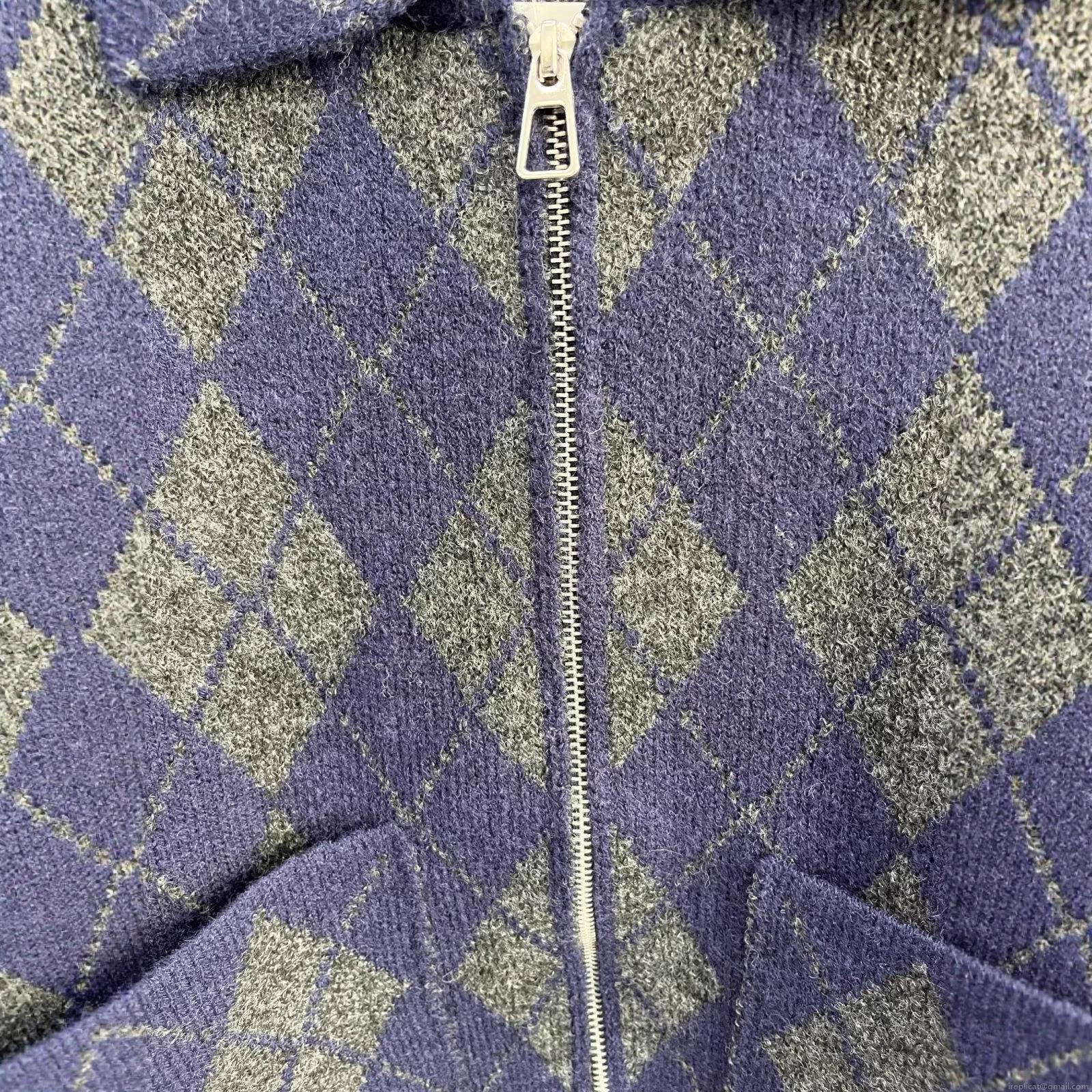 Women's Argyle Knit Jacket Zipper Up Cardigan Lapel Collar Long Sleeve Contrast Color Patchwork Outwear For Autumn Winter Casual Streetwear