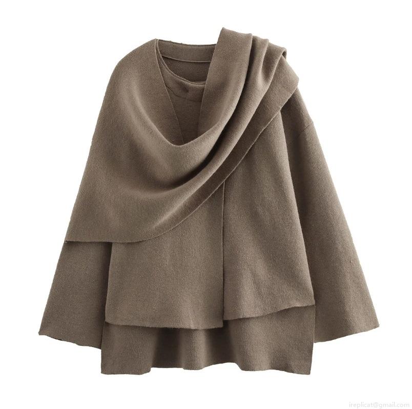 • Women's Asymmetrical Knit Poncho Jacket With Scarf Collar Loose Casual Solid Color Polyester Sweater Cape Outerwear For Autumn Winter