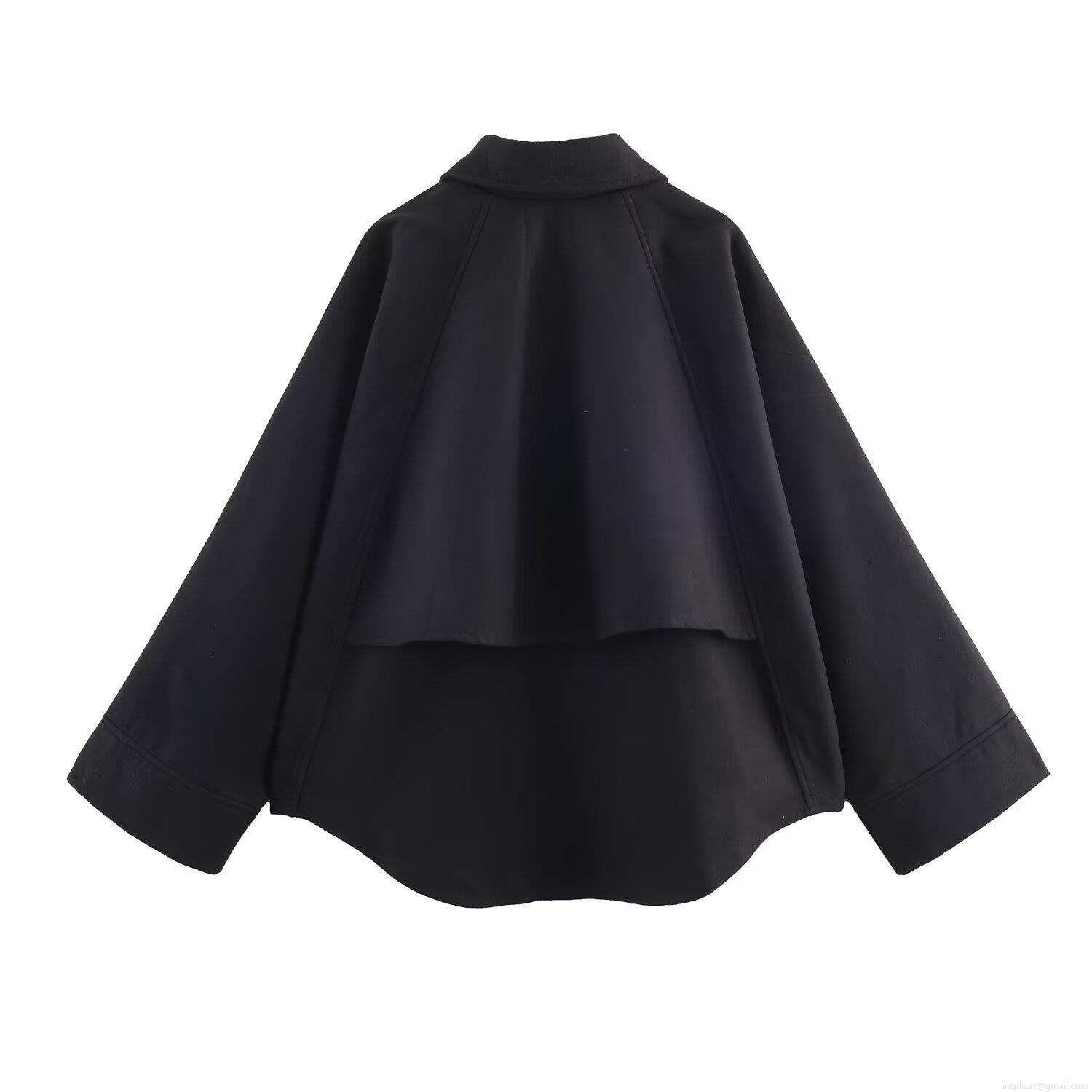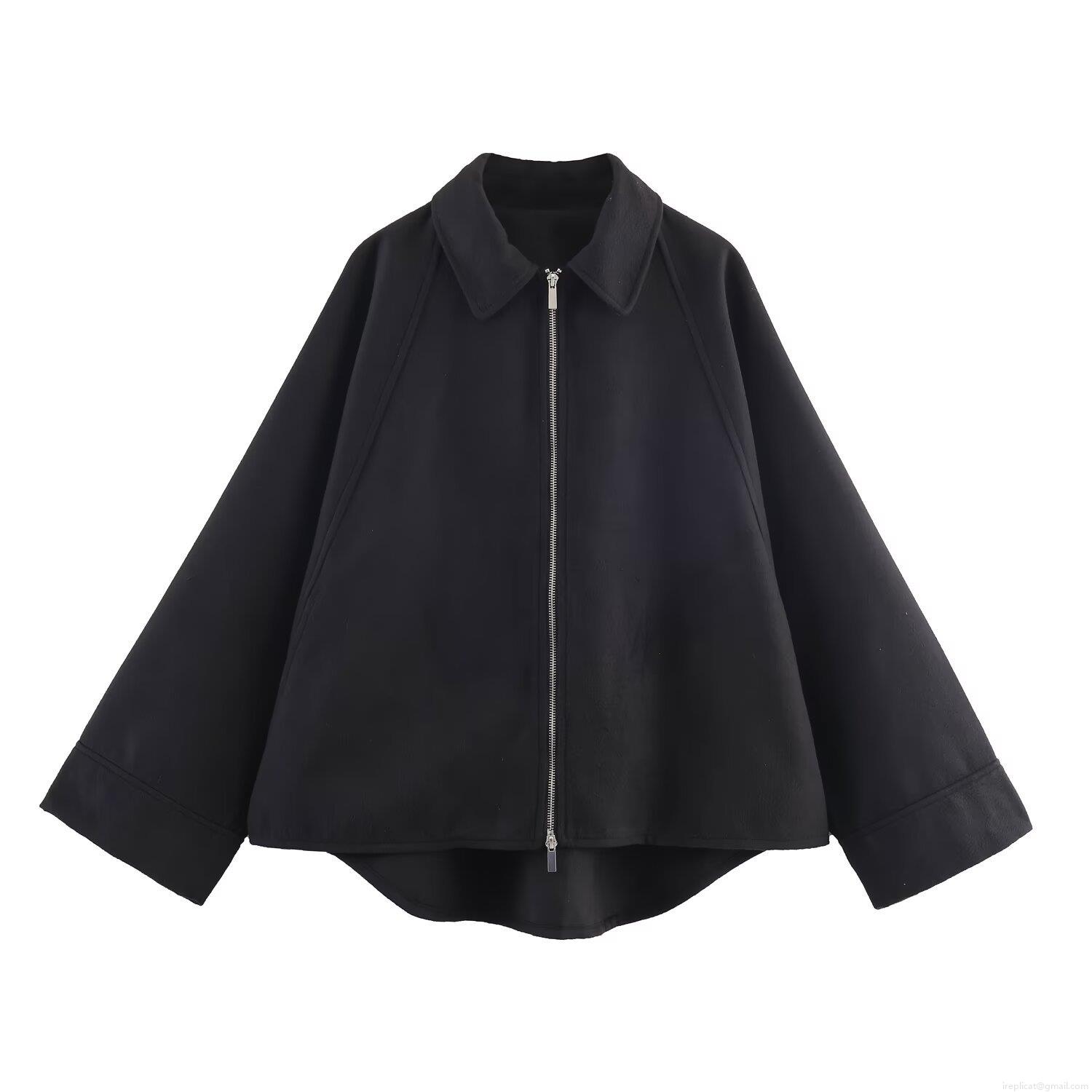 • Women's Autumn Fashion Minimalist Cape Style Blended Fiber Zipper Jacket Loose Fit Lapel Collar Solid Color Outerwear Top For Women