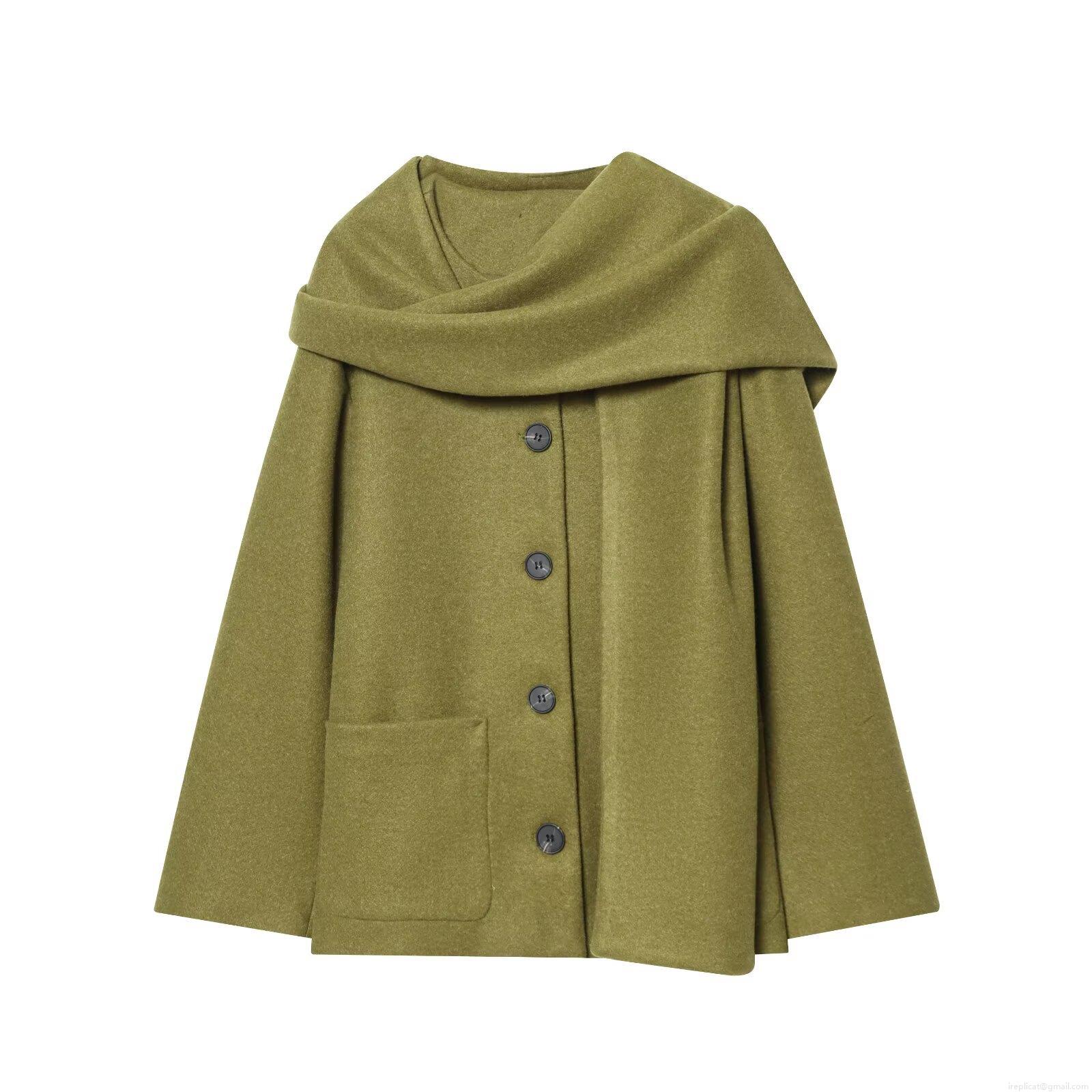 • Women's Autumn Scarf Collar Woolen Coat Chic Single-breasted Solid Color Overcoat With Pockets Long Sleeve Warm Jacket For Women