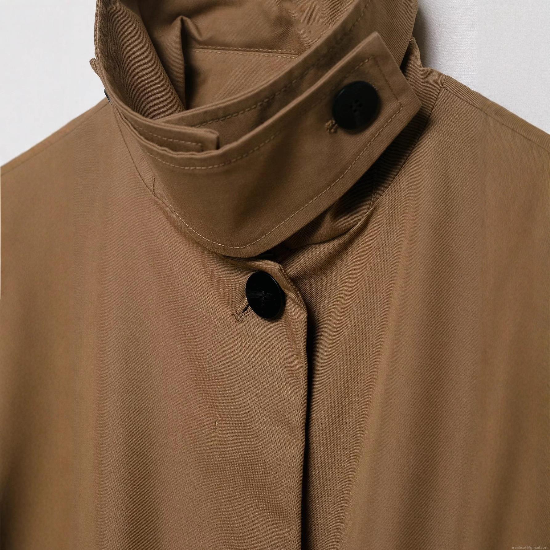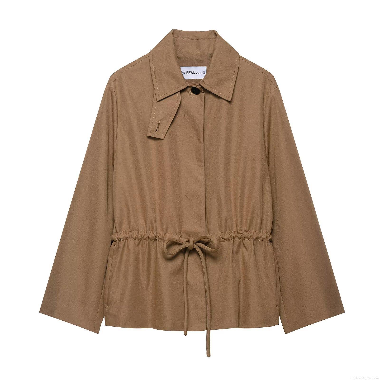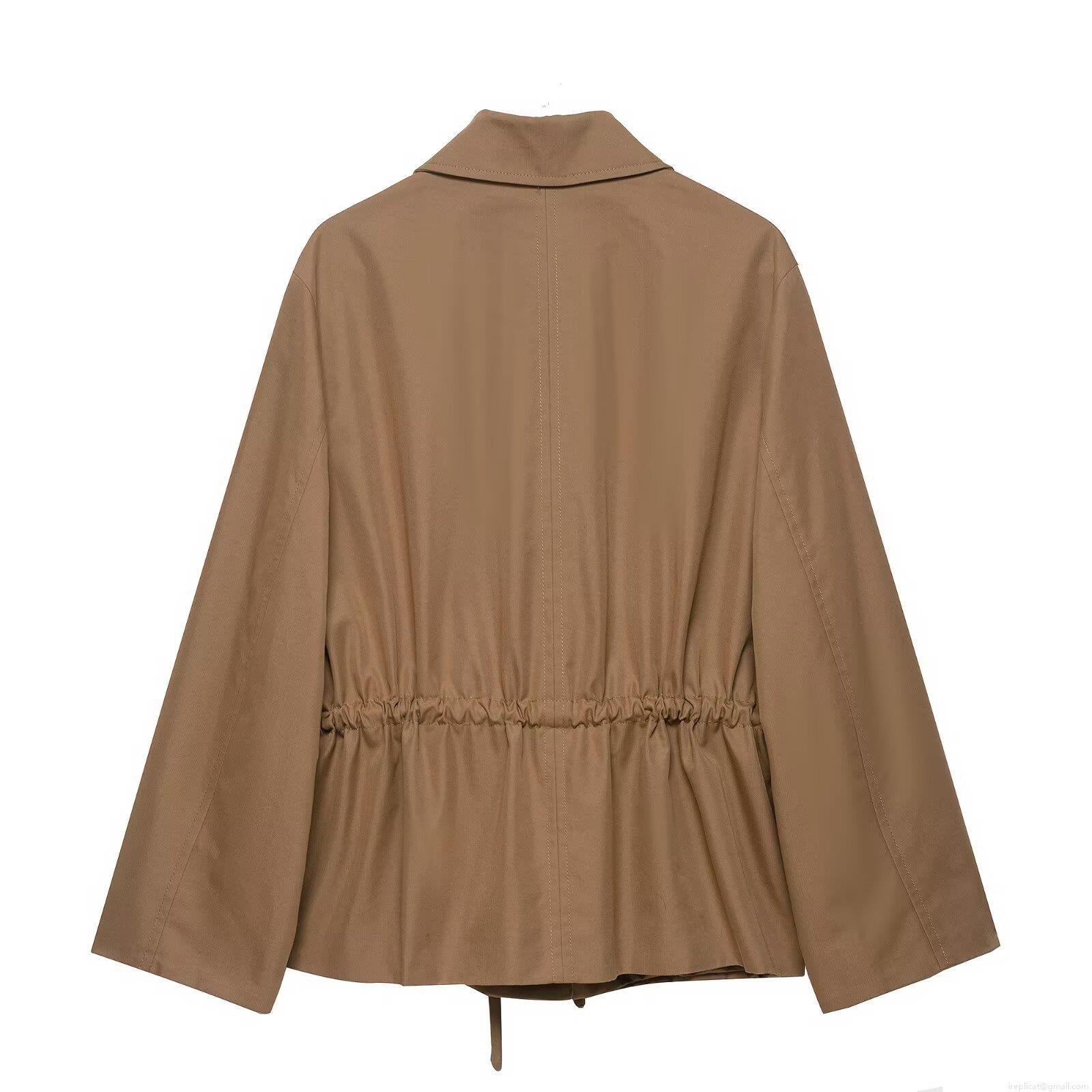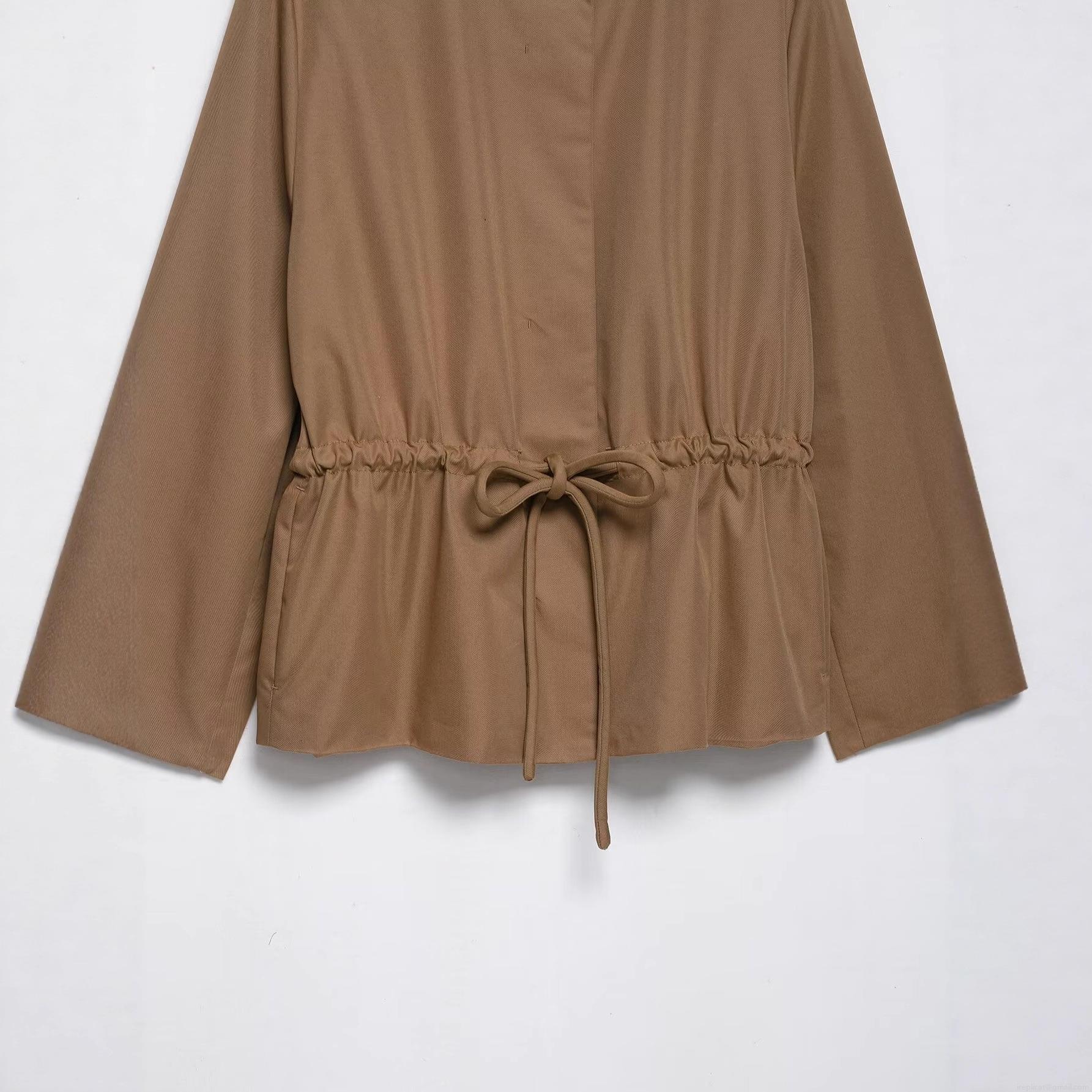 • Women's Autumn Stand Collar Long Sleeve Drawstring Waist Single Breasted Solid Color Loose Jacket Street Style Casual Outerwear Coat