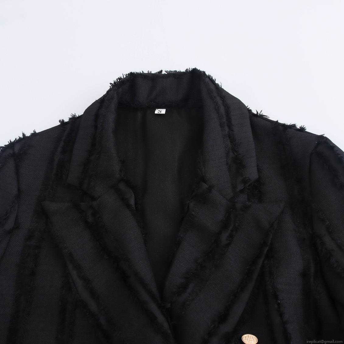 Solid Color, Double-breasted, Tweed Texture, Tassels And Raw Edges, Gold Buttons