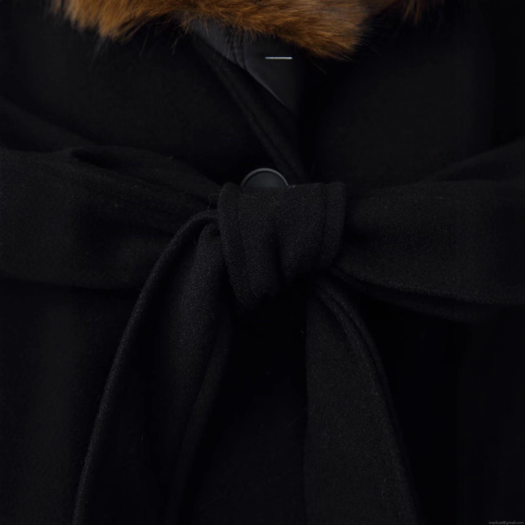 • Women's Autumn Winter Faux Fur Collar Woolen Coat Tie Waist Slimming Black Long Sleeve Lapel Jacket Casual Fashion Streetwear Overcoat