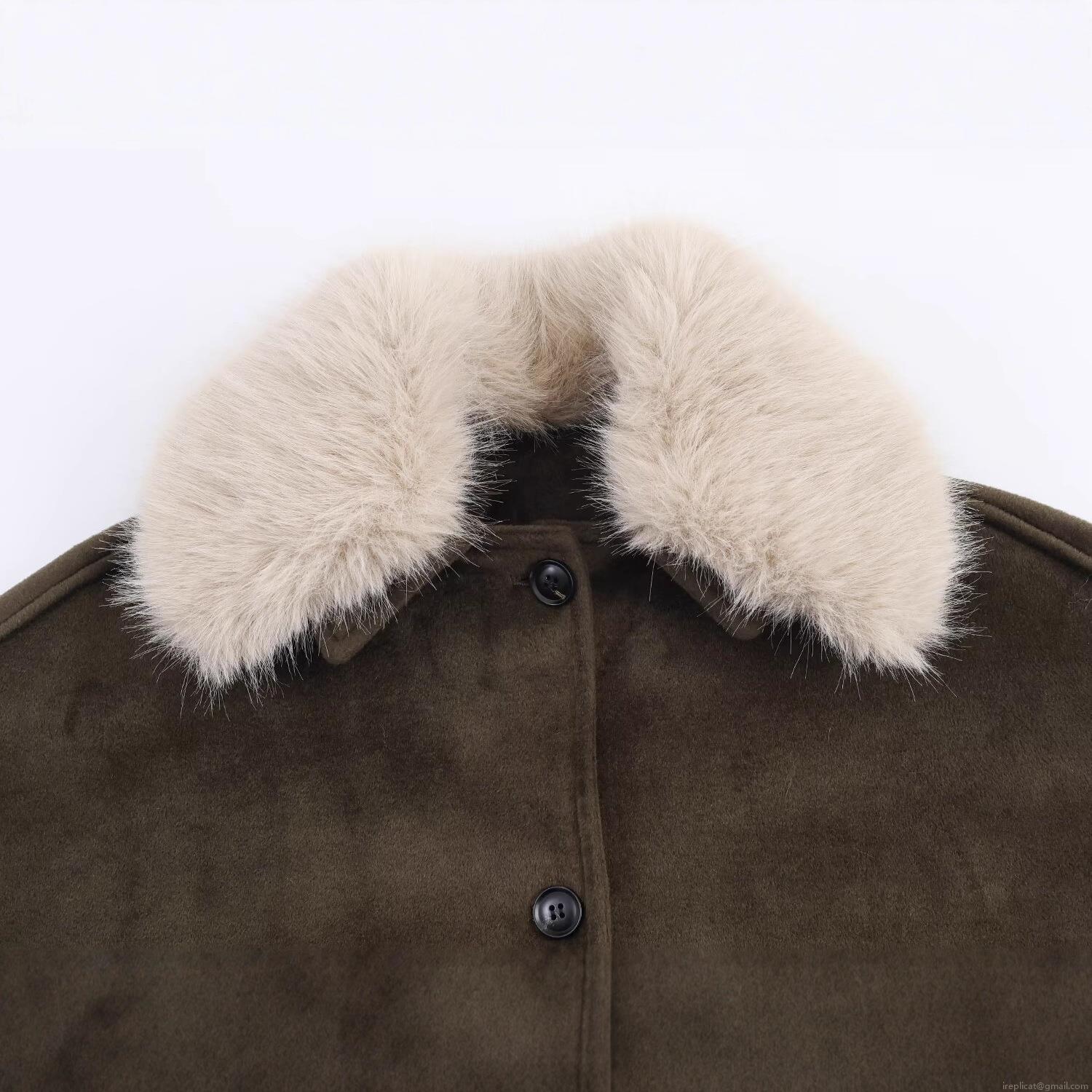• Women's Autumn Winter Faux Fur Collar Woolen Jacket Loose Mid-length Single Breasted Streetwear Coat Solid Color Polyester Blend Outerwear For Women