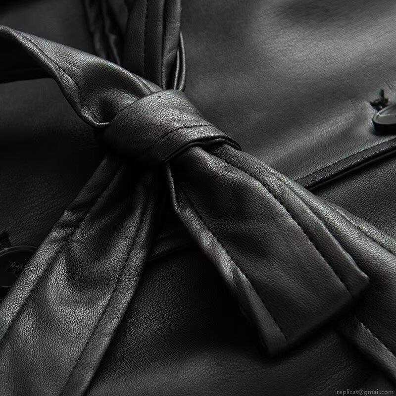 • Women's Black PU Leather Jacket With Belt Long Sleeve Notched Lapel Button Down Short Trench Coat Autumn Winter Solid Color Slim Biker Outerwear For Ladies