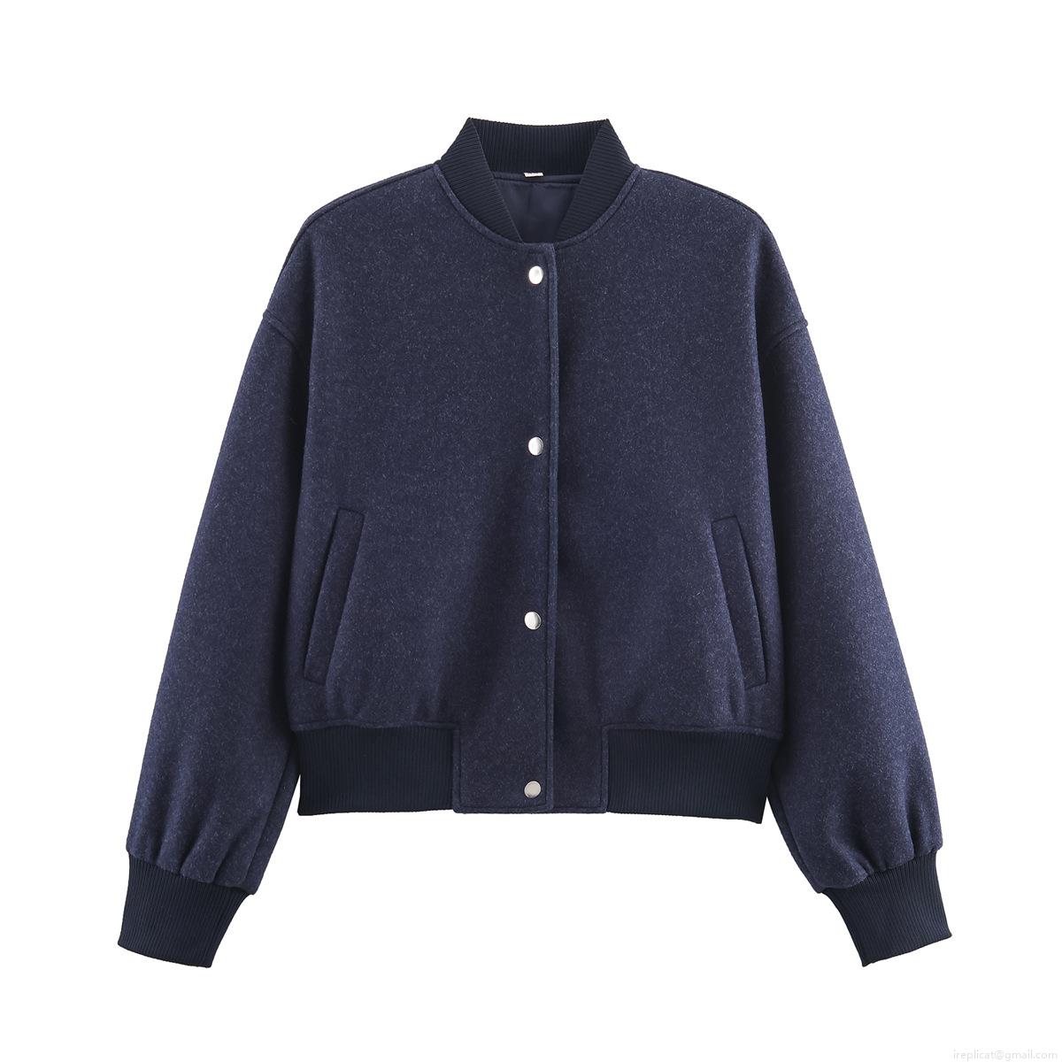 • Women's Bomber Jacket Soft Tweed Texture Round Neck Long Sleeve Single Breasted Loose Fit Streetwear Autumn Winter Casual Outerwear Coat Top Ladies Fashion