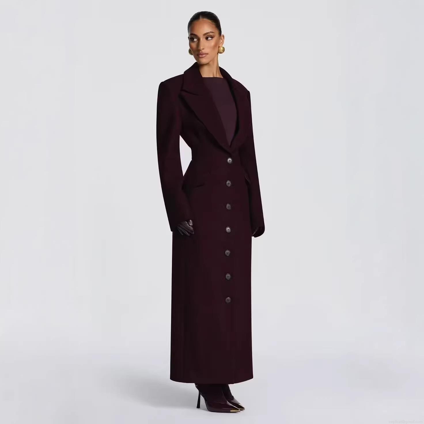 • Women's British Style Long Woolen Overcoat Slim Fit Single Breasted Notch Lapel Warm Outerwear Coat With Belt For Women Autumn Winter