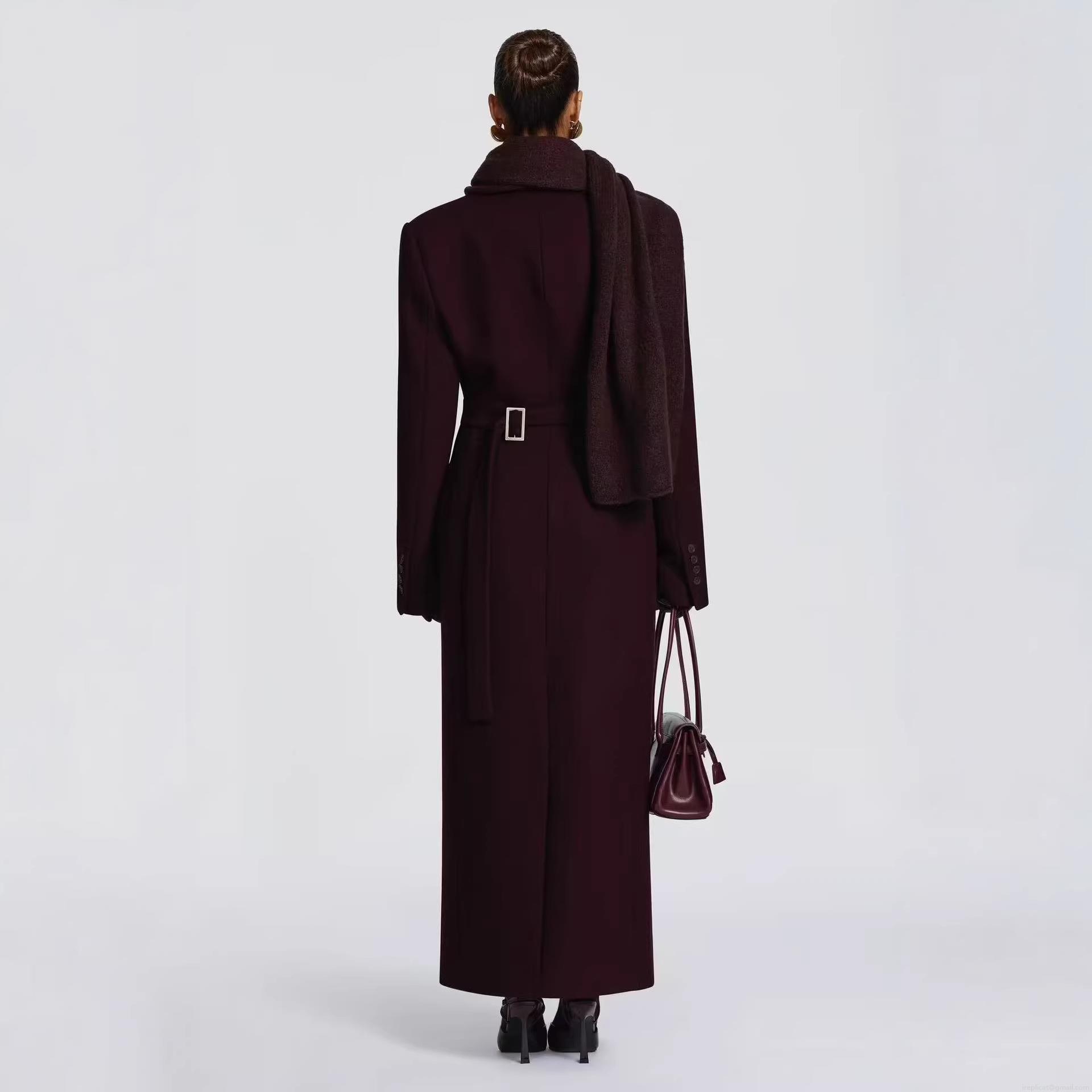 Women's British Style Long Woolen Overcoat Slim Fit Single Breasted Notch Lapel Warm Outerwear Coat With Belt For Women Autumn Winter
