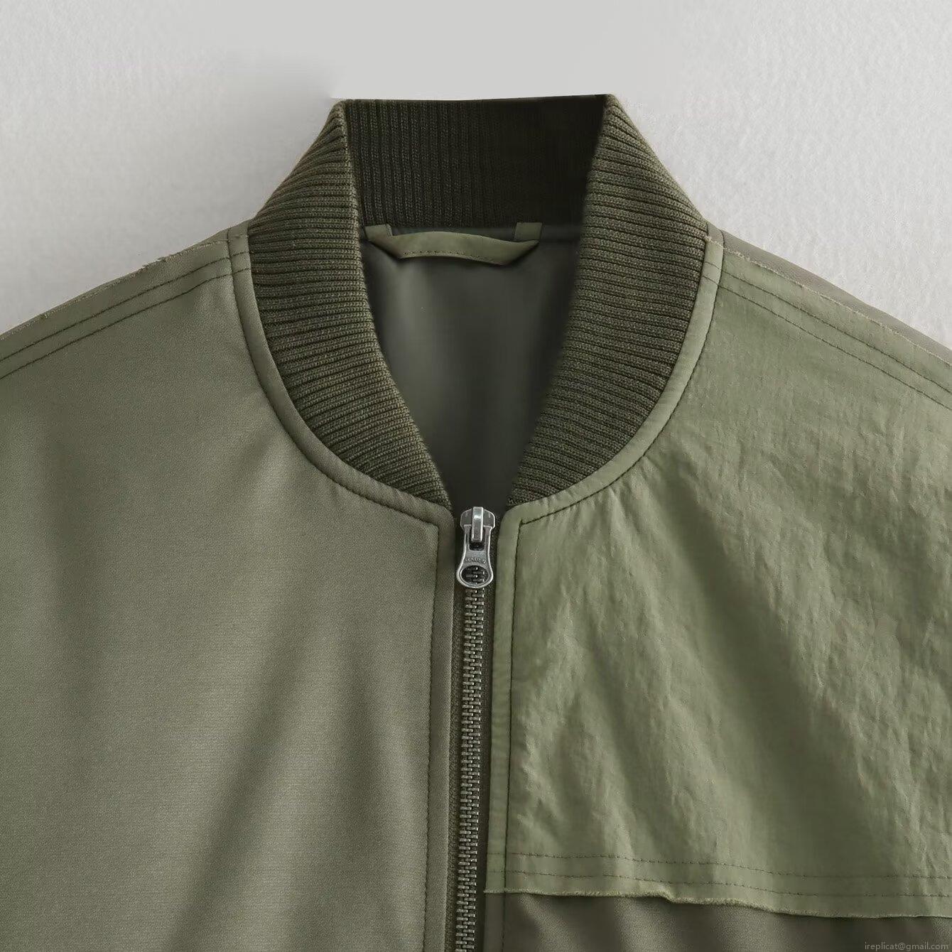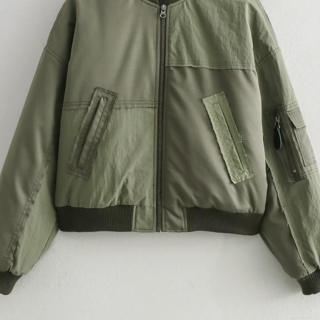 Women's Casual Army Green Bomber Jacket Patchwork Padded Polyester Nylon Spandex Flight Jacket For Outdoor Workwear Fashion Windproof Outerwear Coat