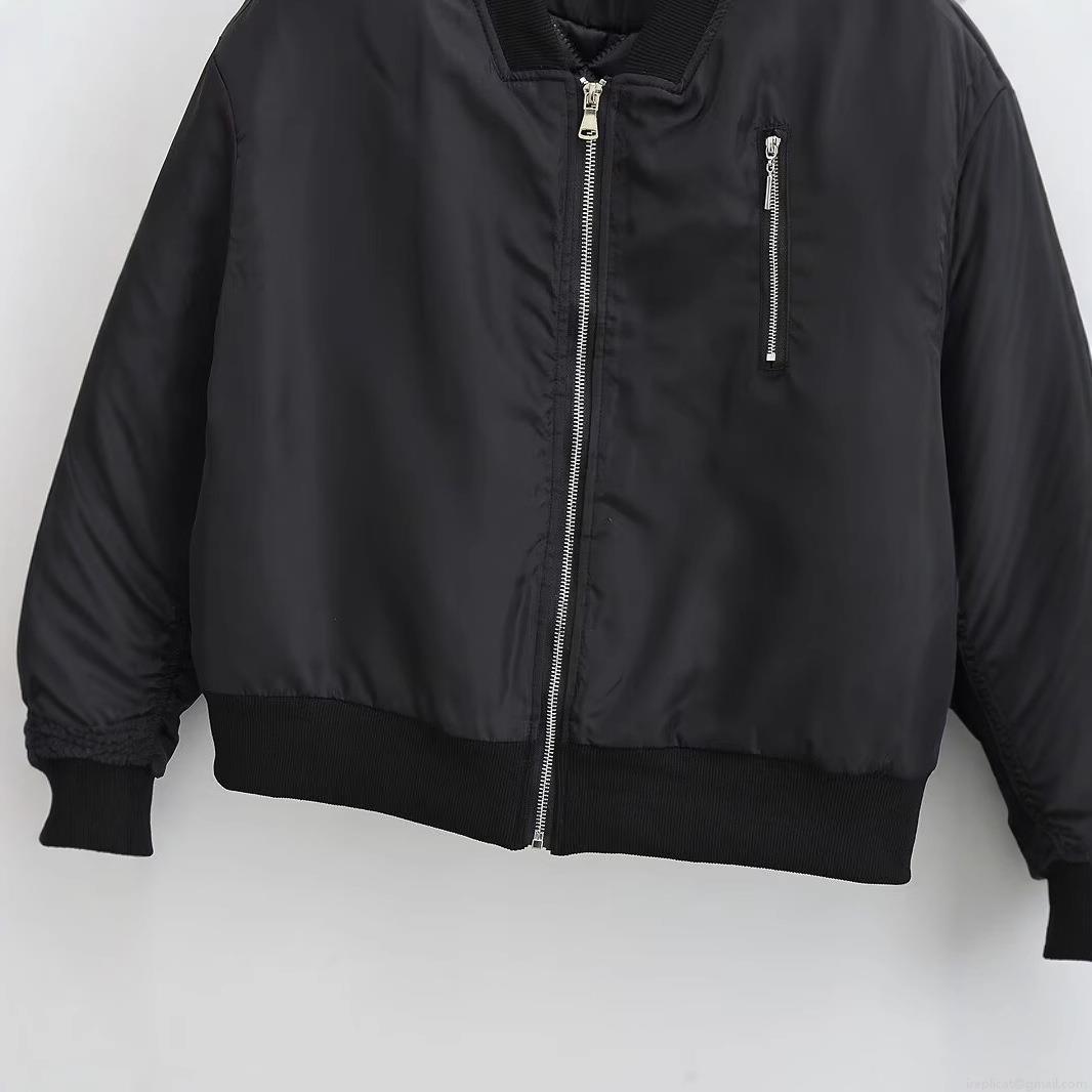 • Women's Casual Black Bomber Jacket Cotton Polyester Quilted Padded Zip Up Coat With Ribbed Trim Stand Collar Long Sleeve Outwear For Winter Daily Wear