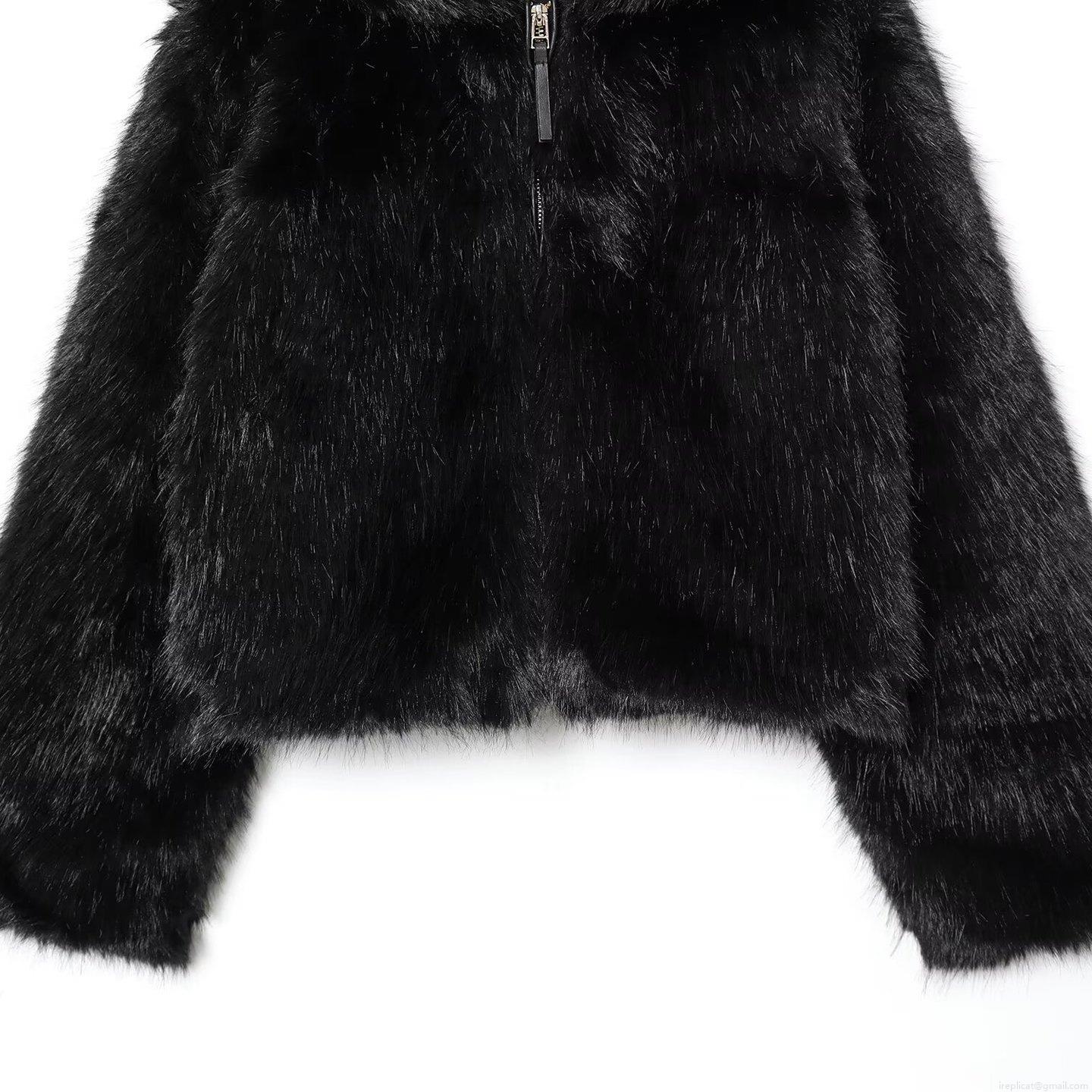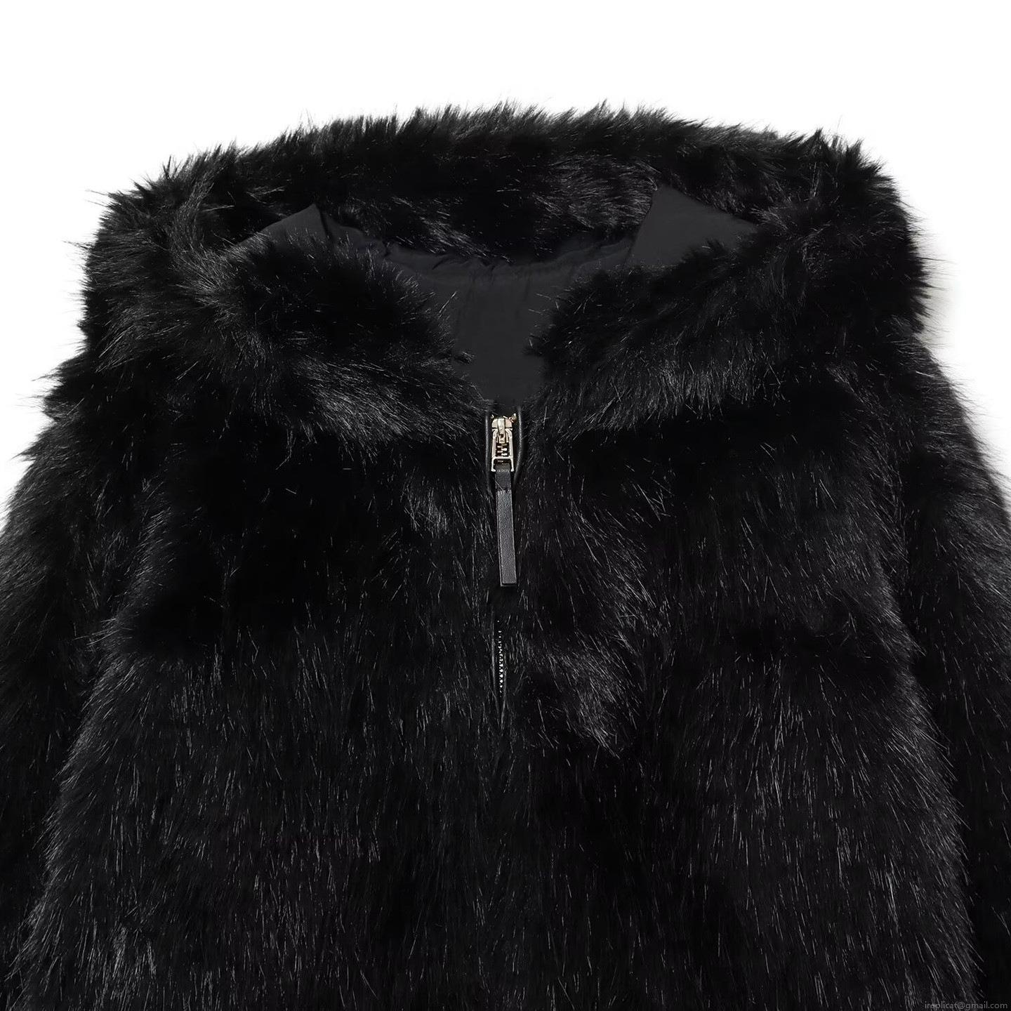 • Women's Casual Black Faux Fur Hooded Jacket Warm Shaggy Zipper Coat With Pockets For Autumn Winter Fashion Outerwear For Ladies