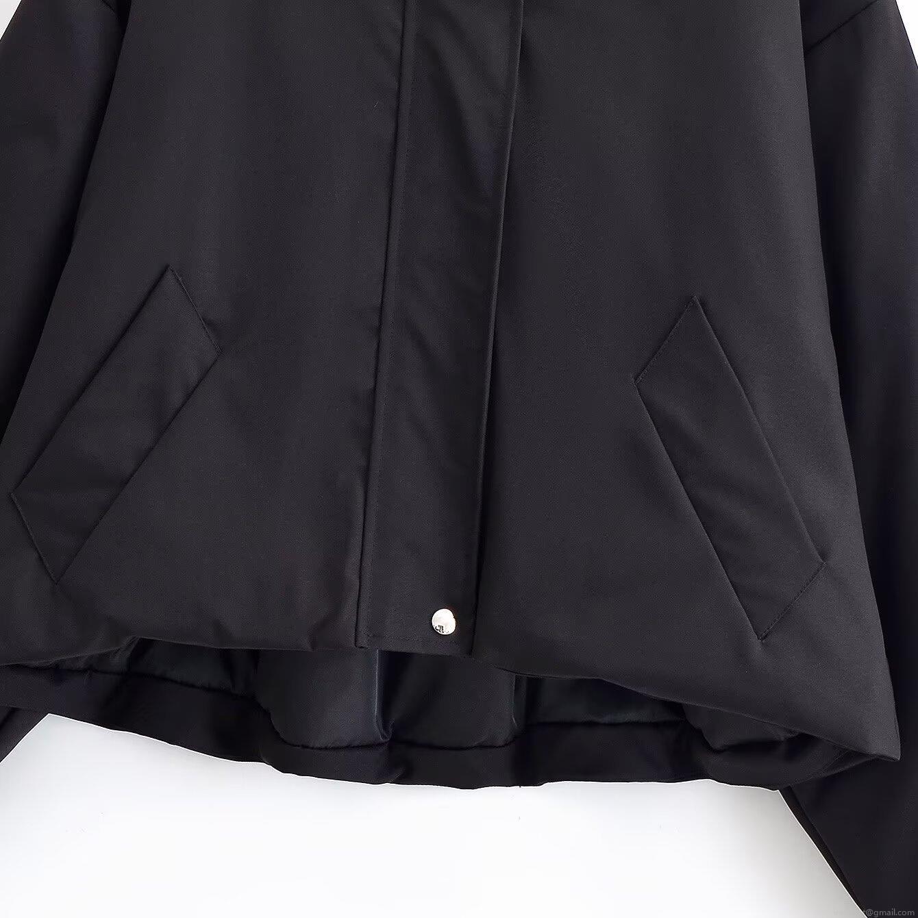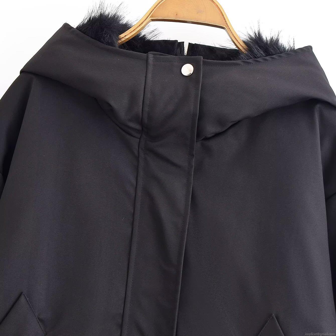 • Women's Casual Black Hooded Jacket With Faux Fur Collar Loose Short Winter Outerwear Coat Solid Color Long Sleeve Zip Up Warm Windproof Ladies Fashion Clothing