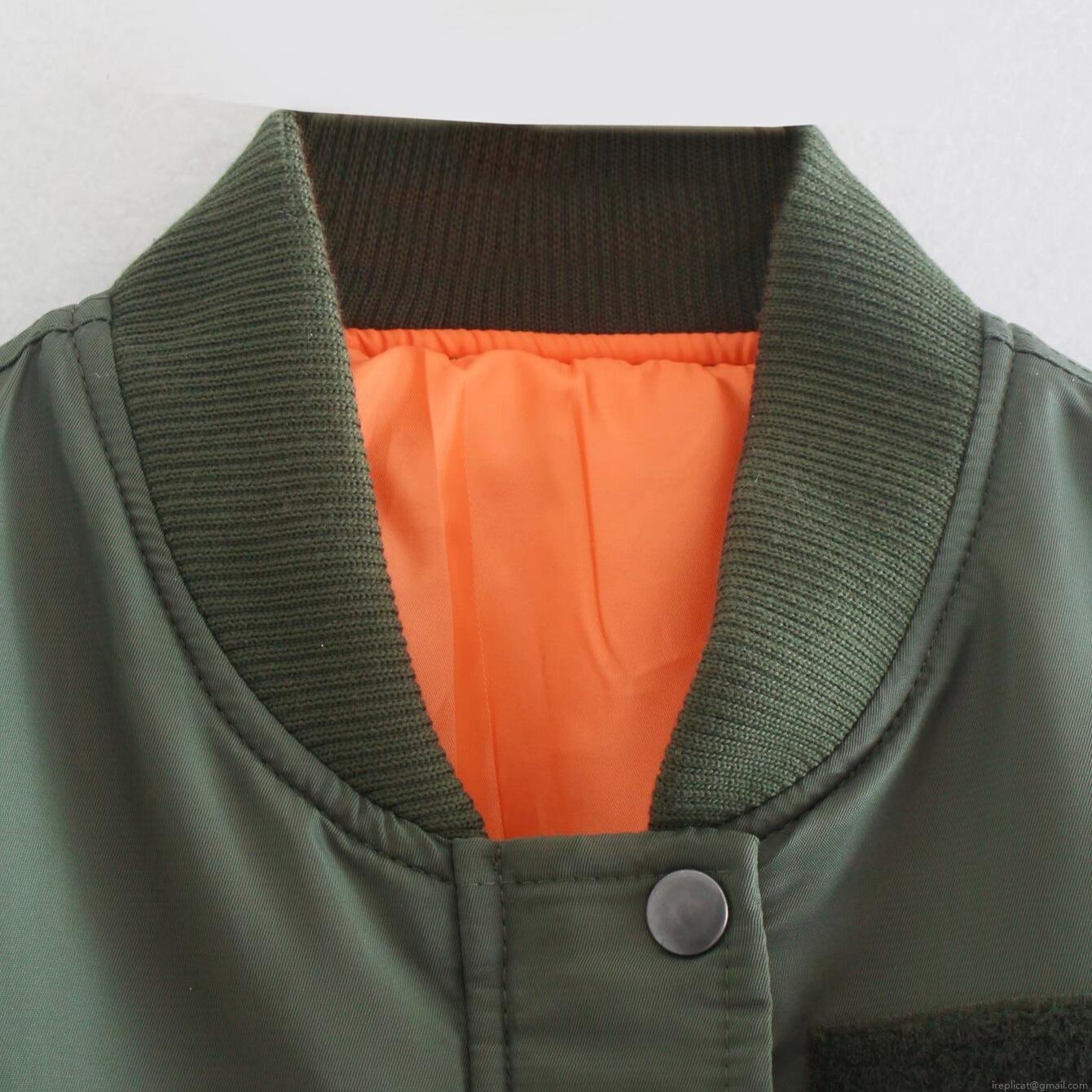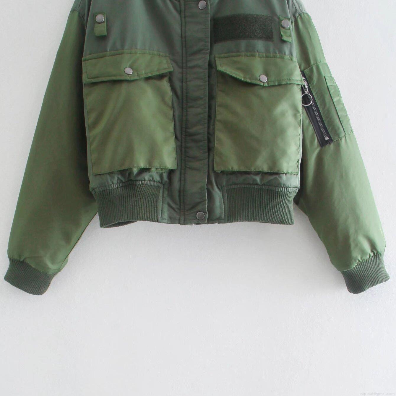 • Women's Casual Bomber Jacket Army Green Windproof Padded Coat With Contrast Orange Lining Short Loose Fit Flight Jacket Outerwear For Women