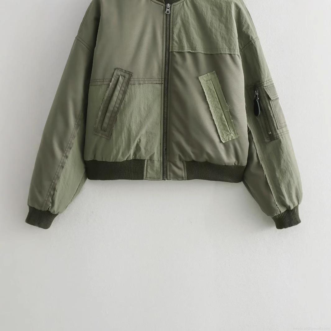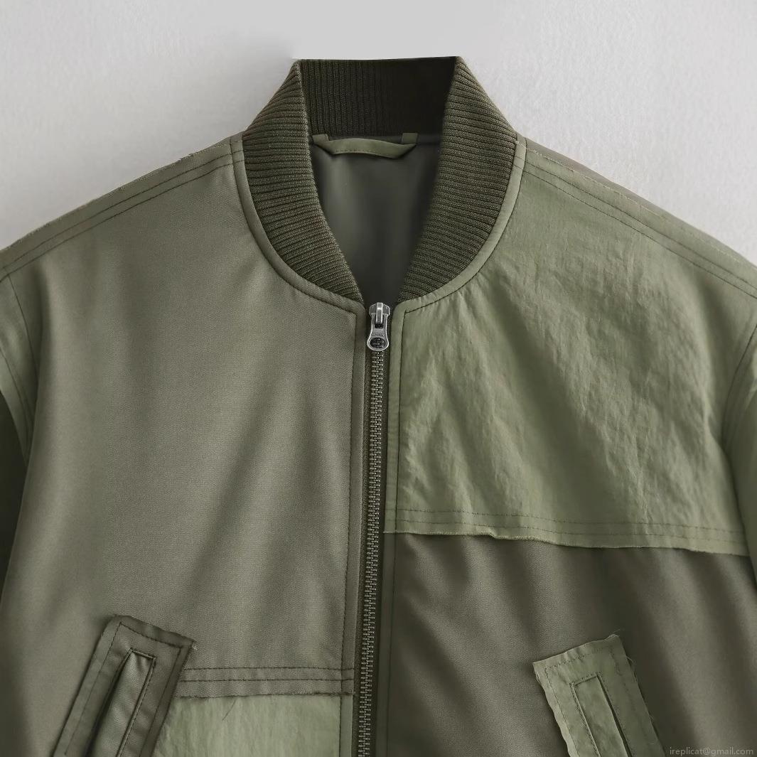 • Women's Casual Bomber Jacket Polyester Full Zip Ribbed Trim Short Coat Windproof Outerwear With Pockets For Daily Outdoor
