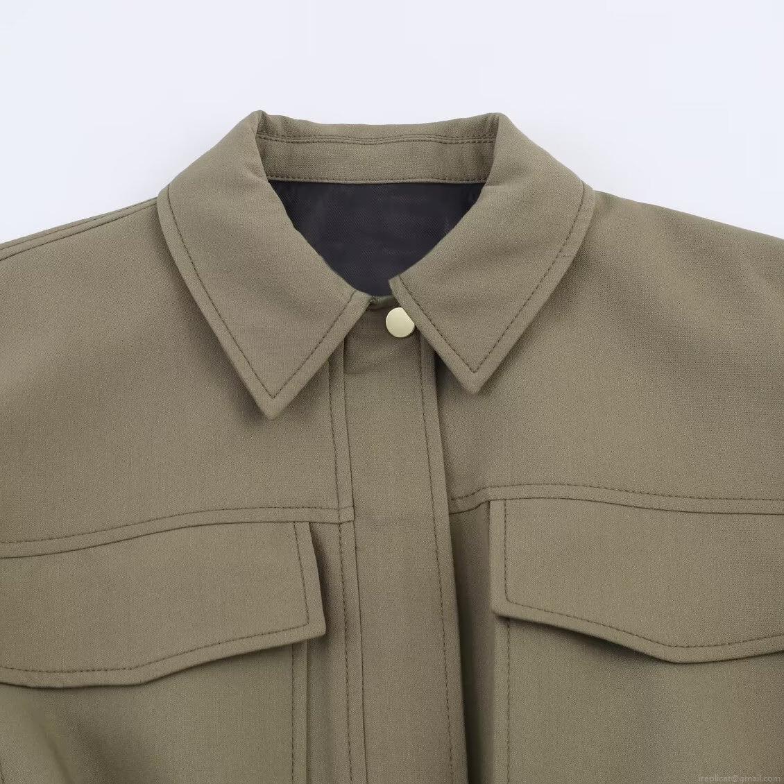• Women's Casual Bomber Jacket Polyester Spandex Workwear Style Drop Shoulder Outerwear With Large Pockets Zipper Turn-down Collar Loose Fit Short Coat For Autumn Daily Fashion