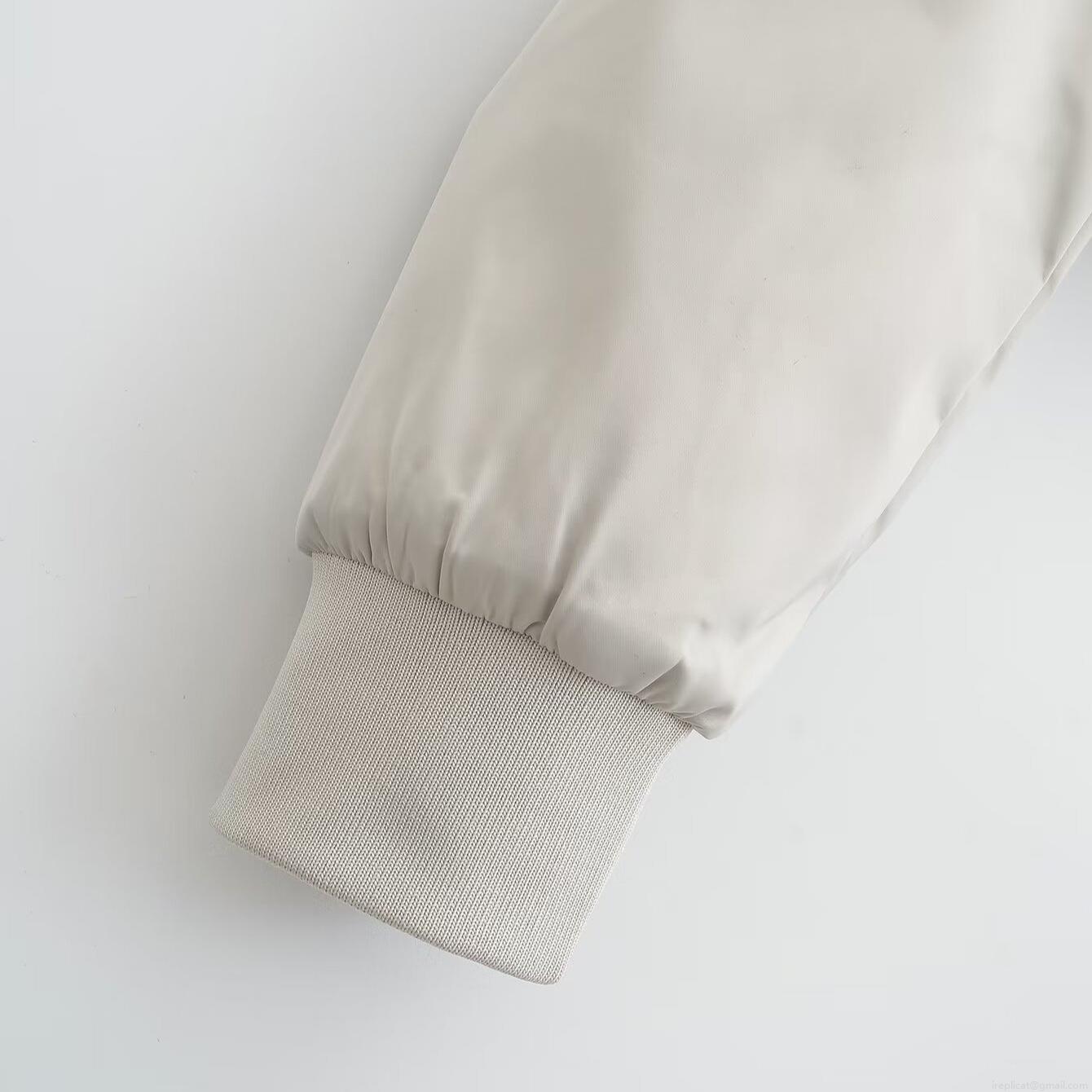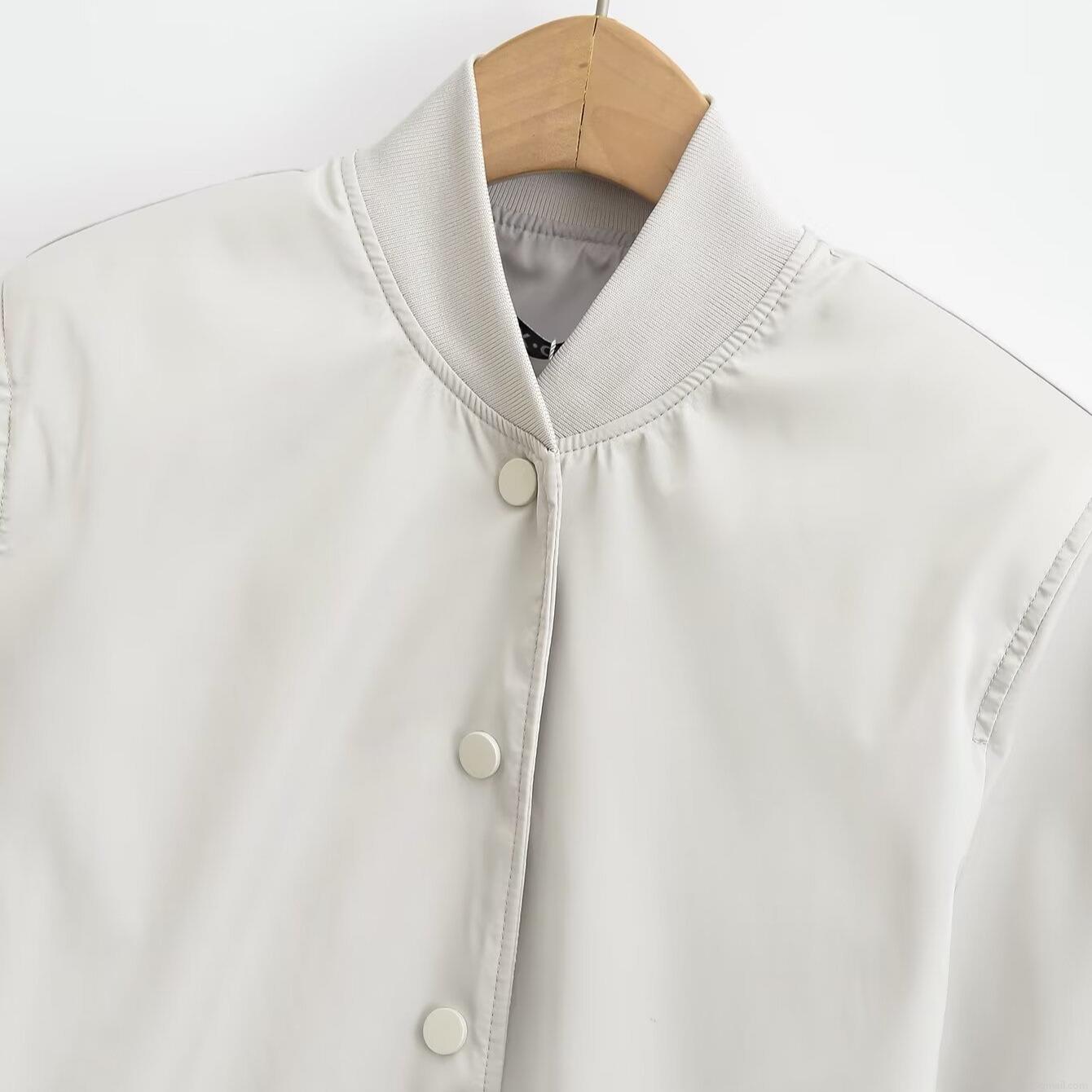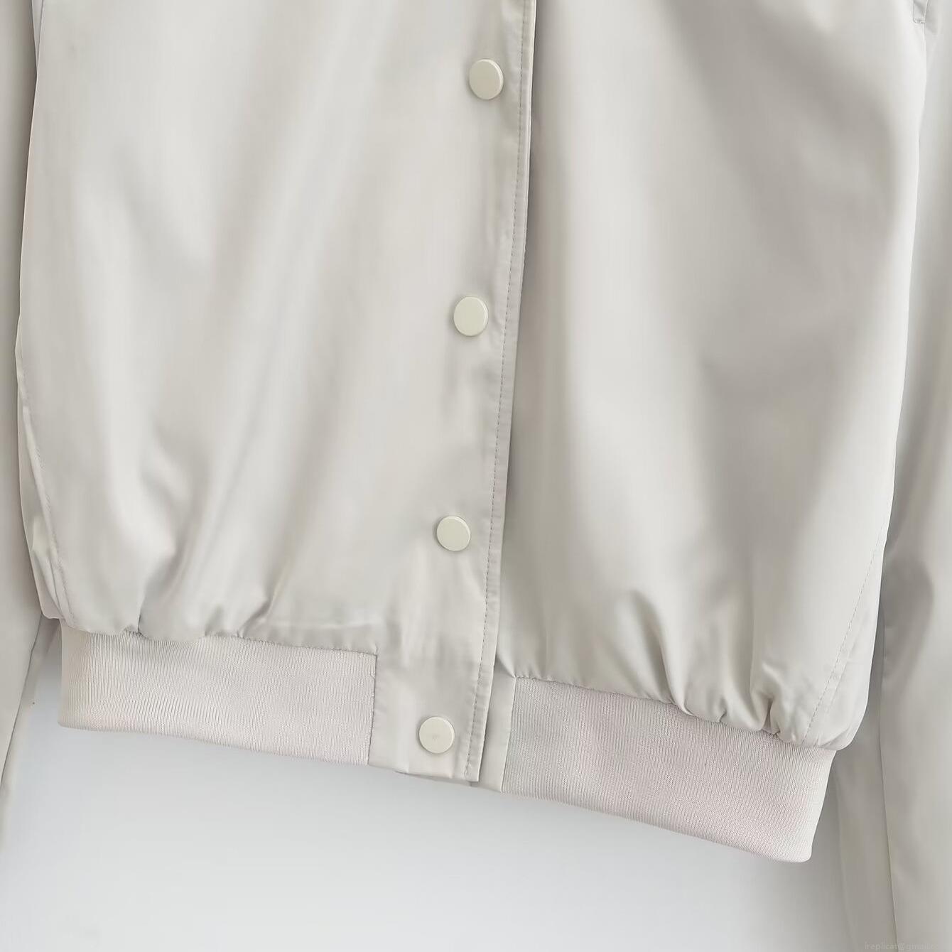 • Women's Casual Bomber Jacket Satin Polyester Spandex Blend Short Snap Button Coat Ribbed Collar Long Sleeve Outerwear For Daily Wear Fashion Solid Color Lightweight Jacket