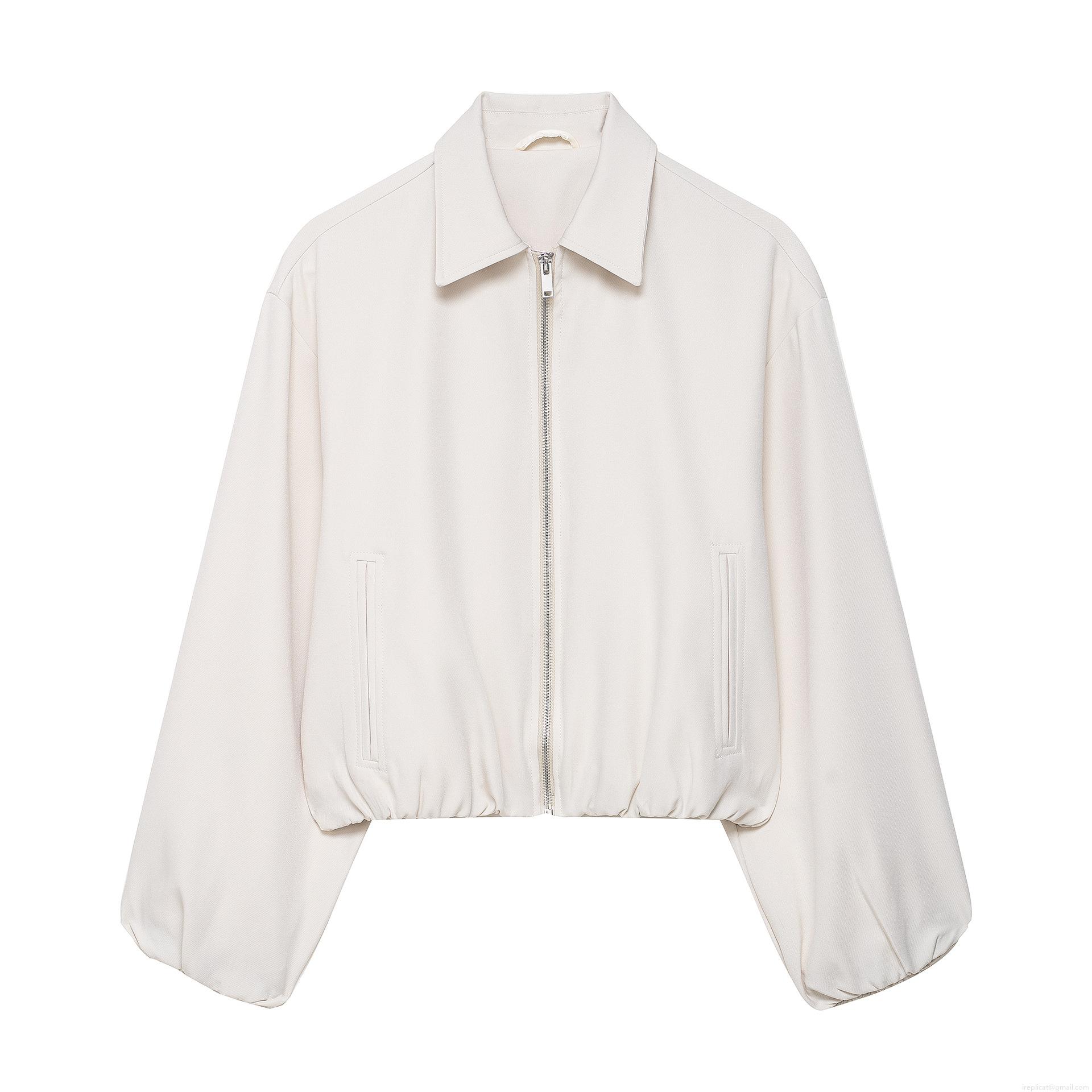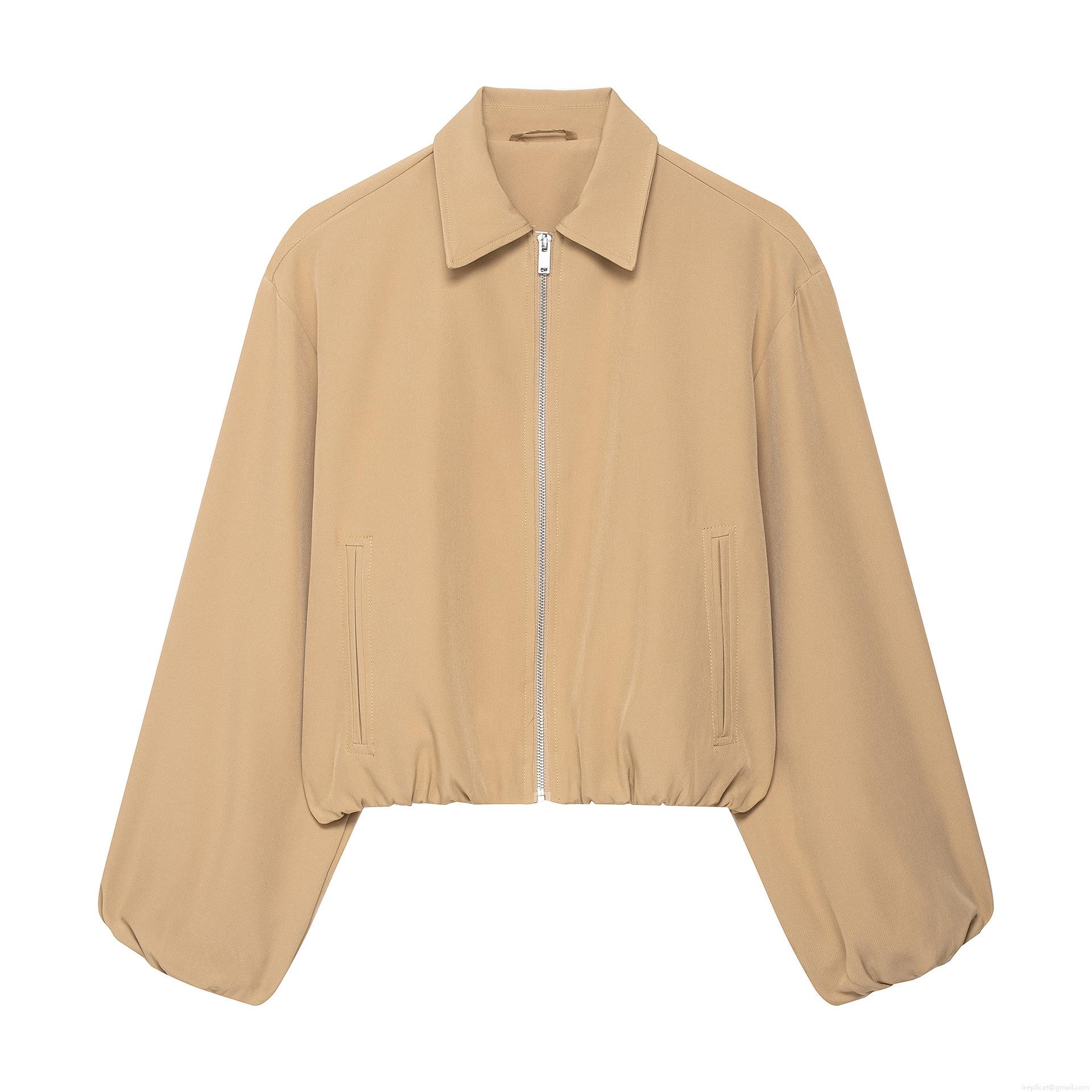Women's Casual Bomber Jacket Short Polyester Zipper Outerwear Lapel Long Sleeve Coat For Daily Fashion Streetwear Women Clothing
