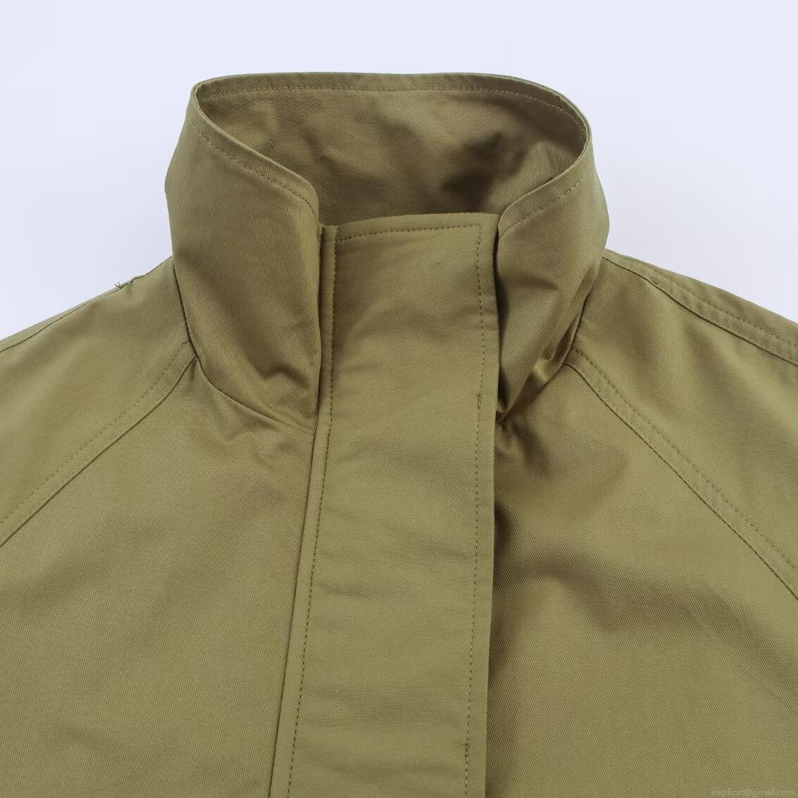 • Women's Casual Cargo Utility Jacket Windproof Polyester Stand Collar Drawstring Waist Outwear With Large Pockets For Autumn Daily Streetwear Army Green