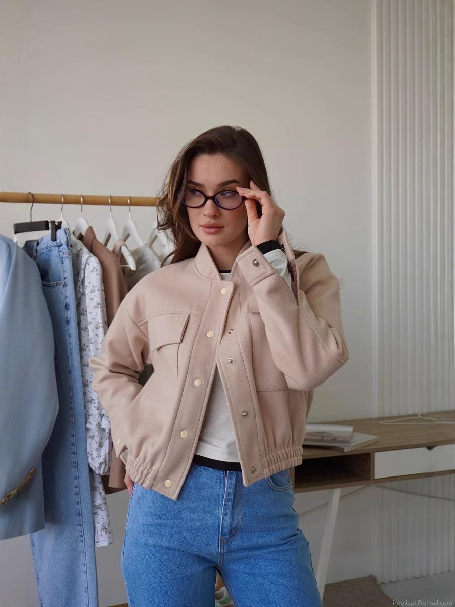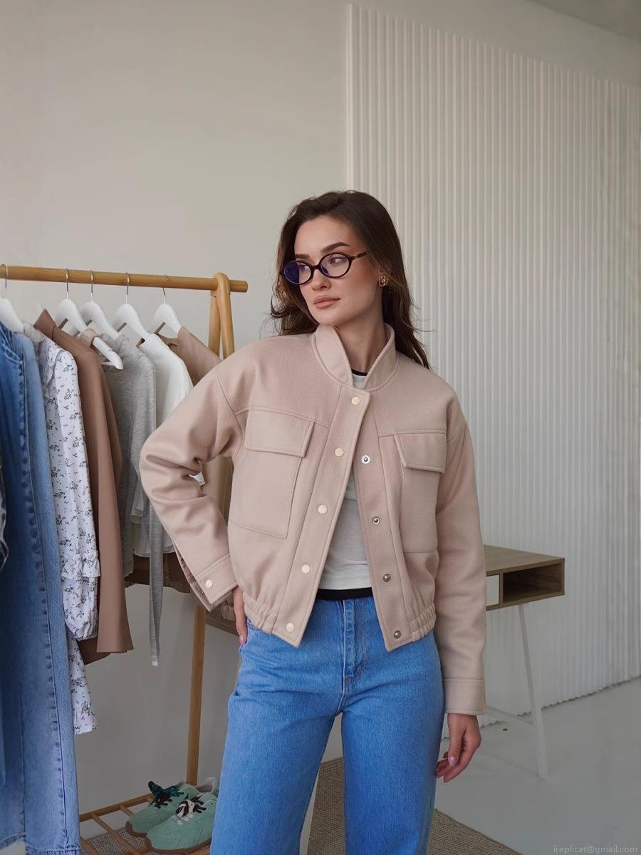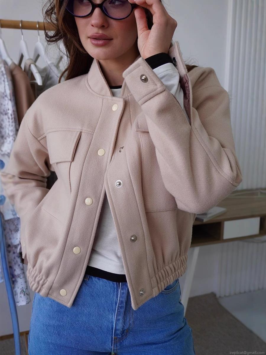 • Women's Casual Cotton Blend Bomber Jacket Large Pockets Snap Button Wool-Like Warm Outwear Autumn Winter Workwear Loose Coat