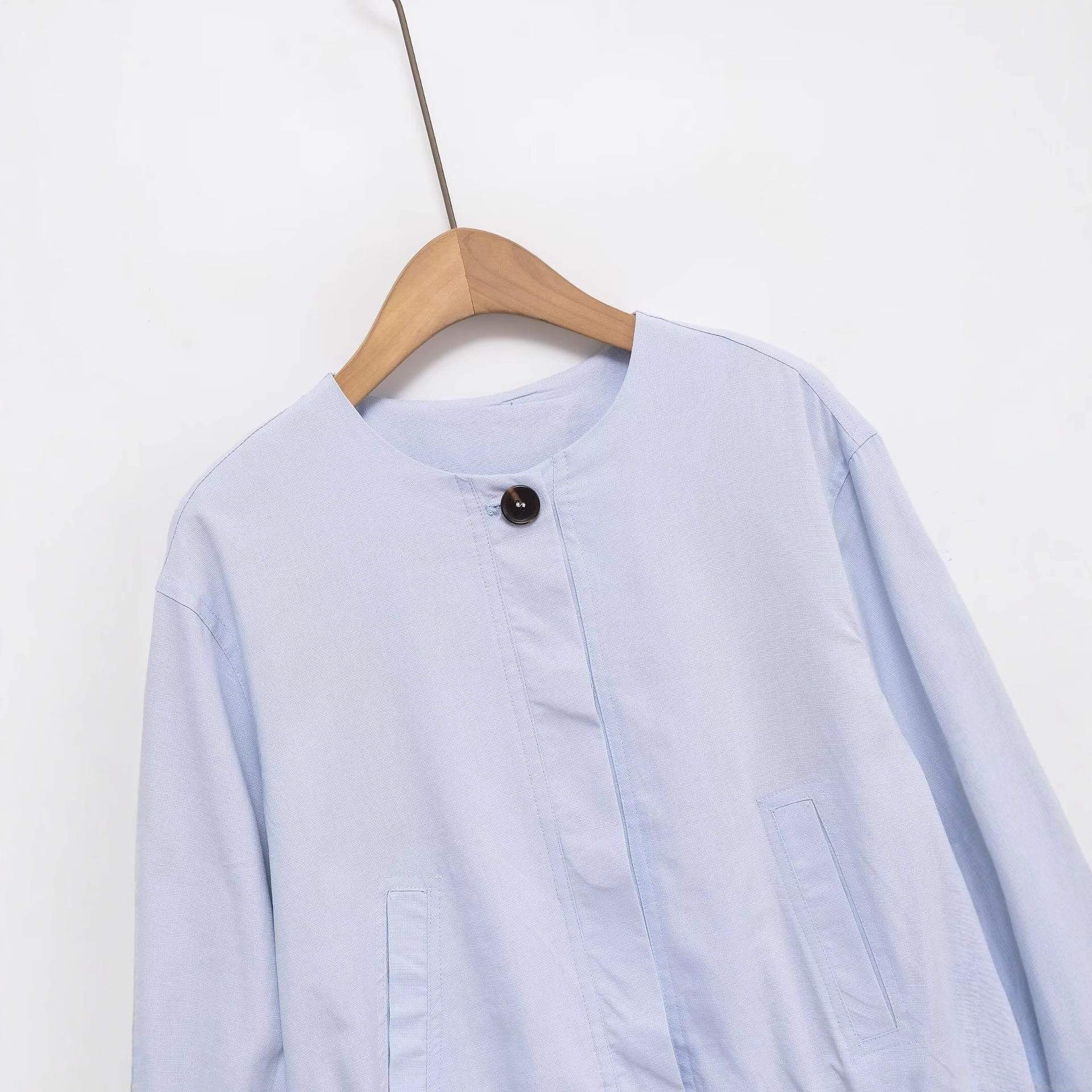 • Women's Casual Cotton Linen Blend Light Jacket Fashion Boxy Loose Windbreaker Single Breasted Long Sleeve Round Neck Short Coat For Daily Travel Spring Autumn