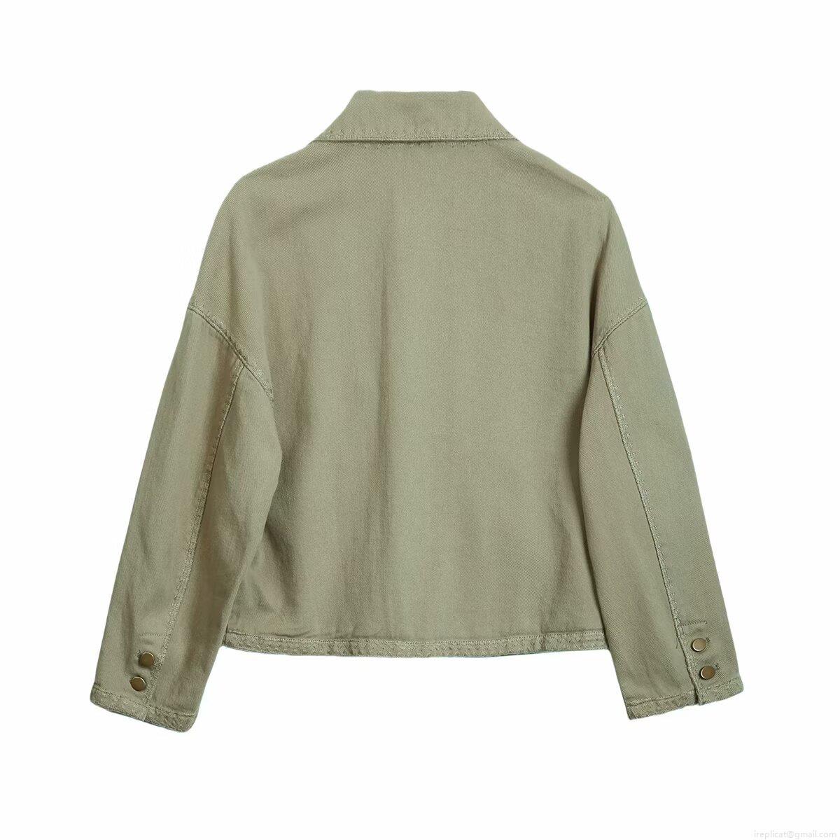 • Women's Casual Cotton Twill Workwear Jacket Lapel Long Sleeve Single Breasted Coat With Pockets Solid Color Street Style Outerwear