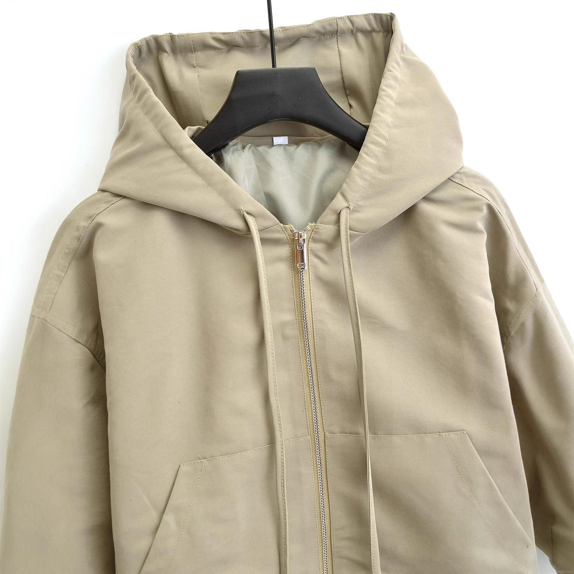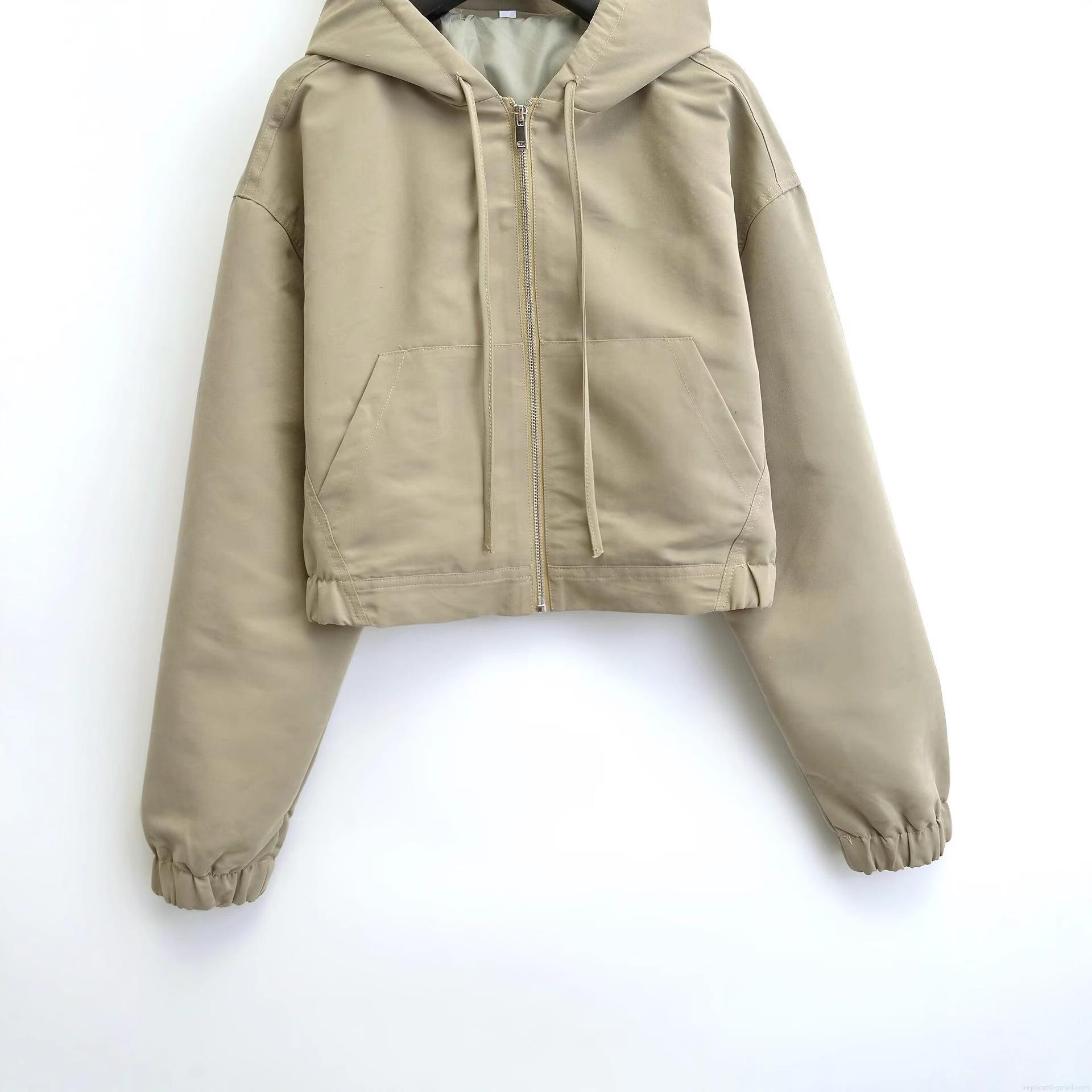 • Women's Casual Cropped Hooded Jacket Loose Drawstring Solid Color Fashion Zip Up Windbreaker Coat Outerwear for Streetwear Daily Wear