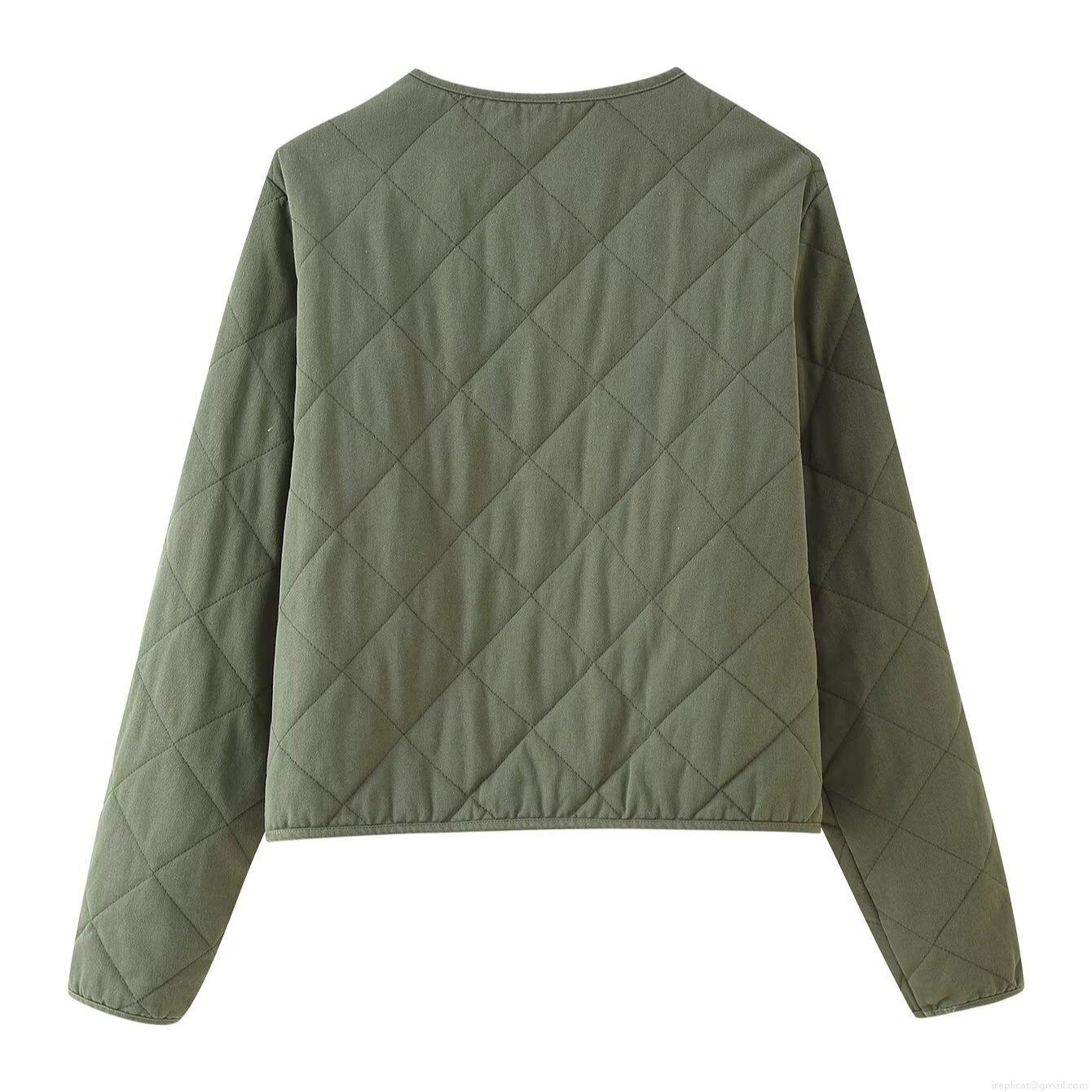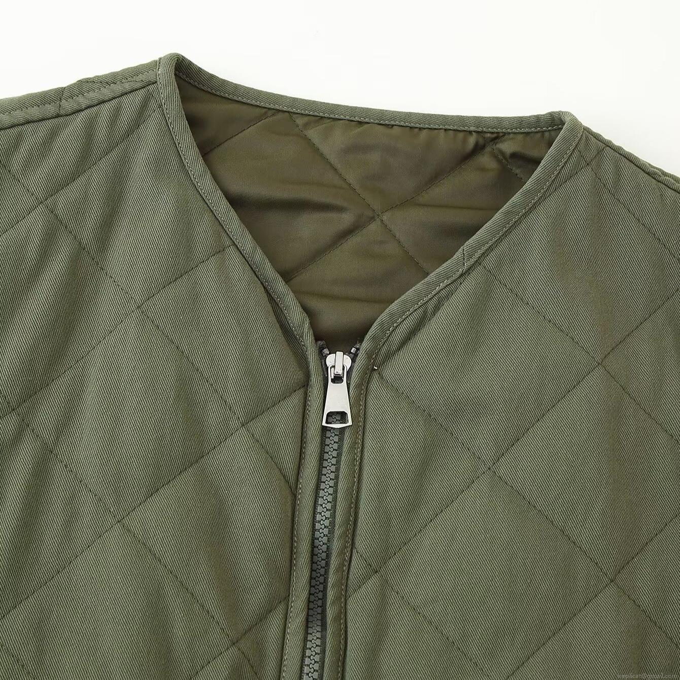 Solid Color, Diamond Pattern, V-neck, Metal Zipper, Quilting