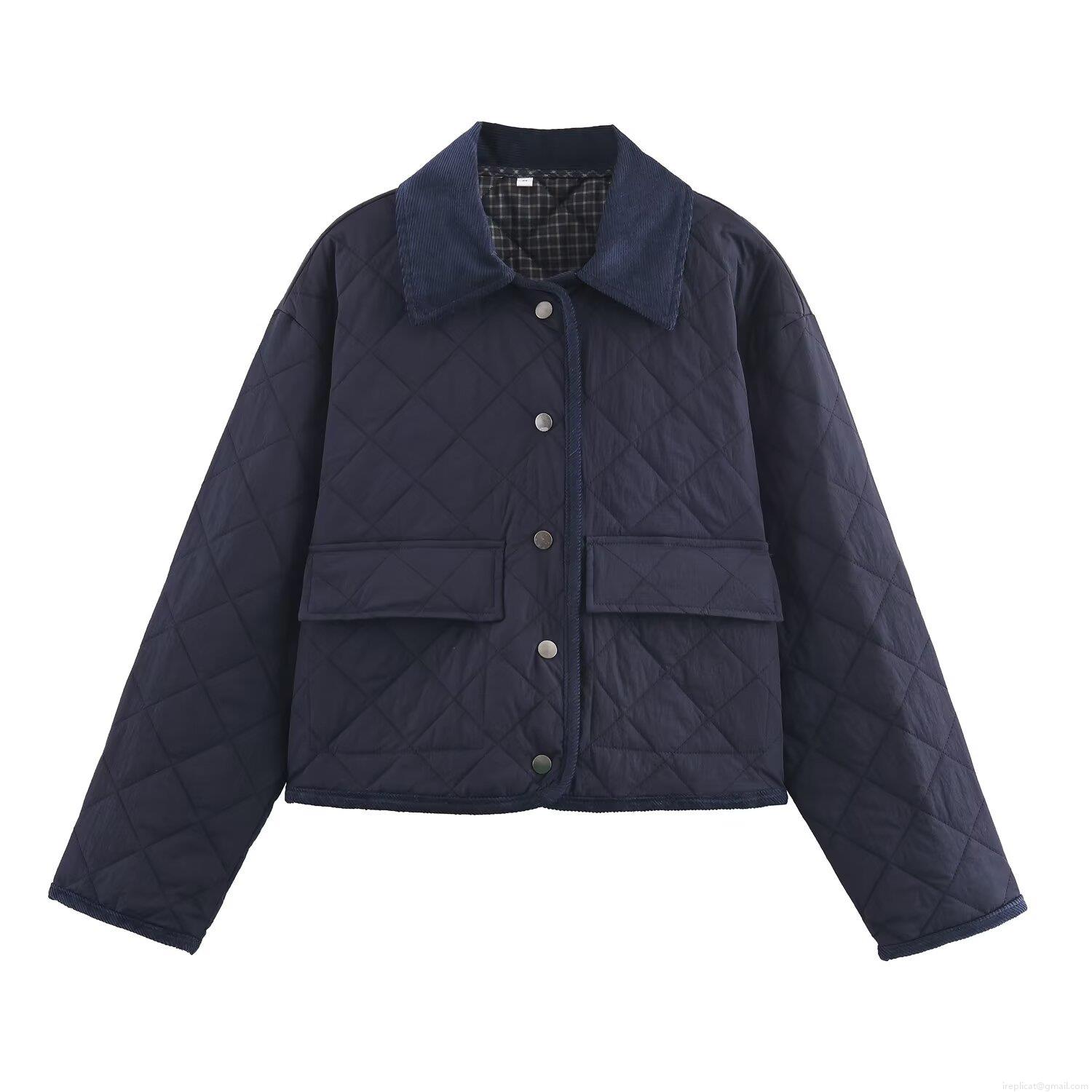Diamond Pattern, Quilting, Metal Buckle, Corduroy Collar, Big Pocket