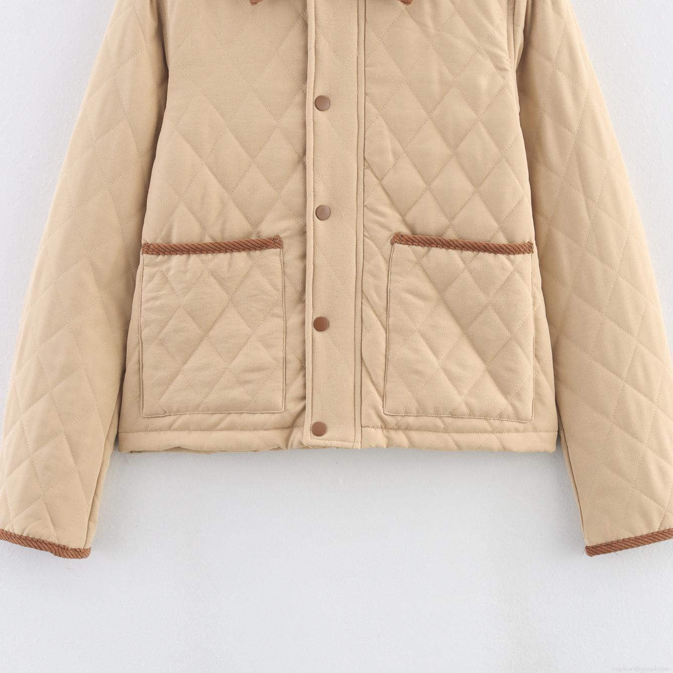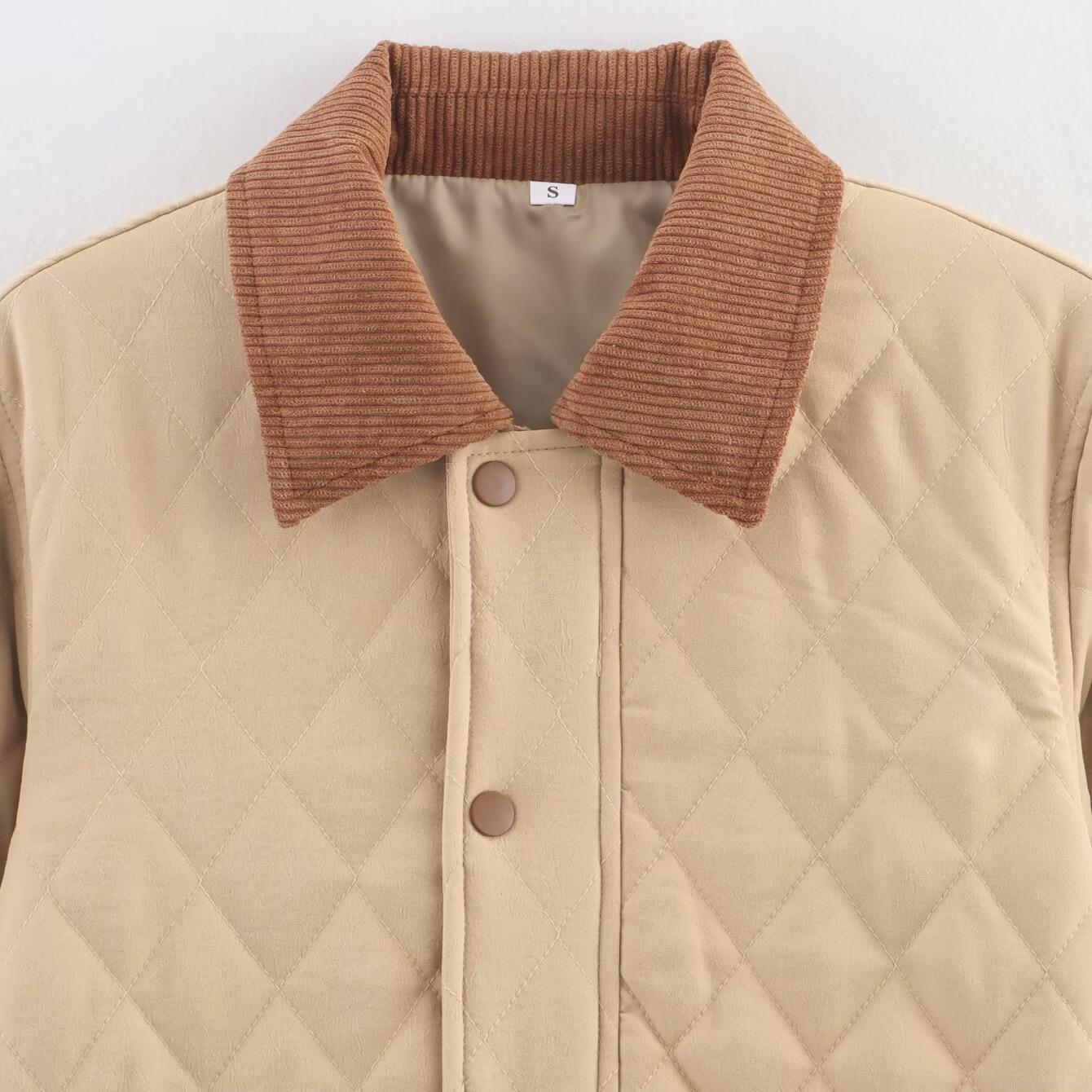 Solid Color, Pocket, Diamond Pattern, Quilting, Single-breasted, Corduroy Collar