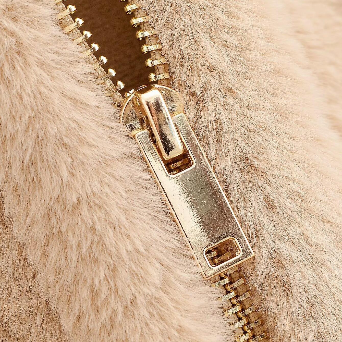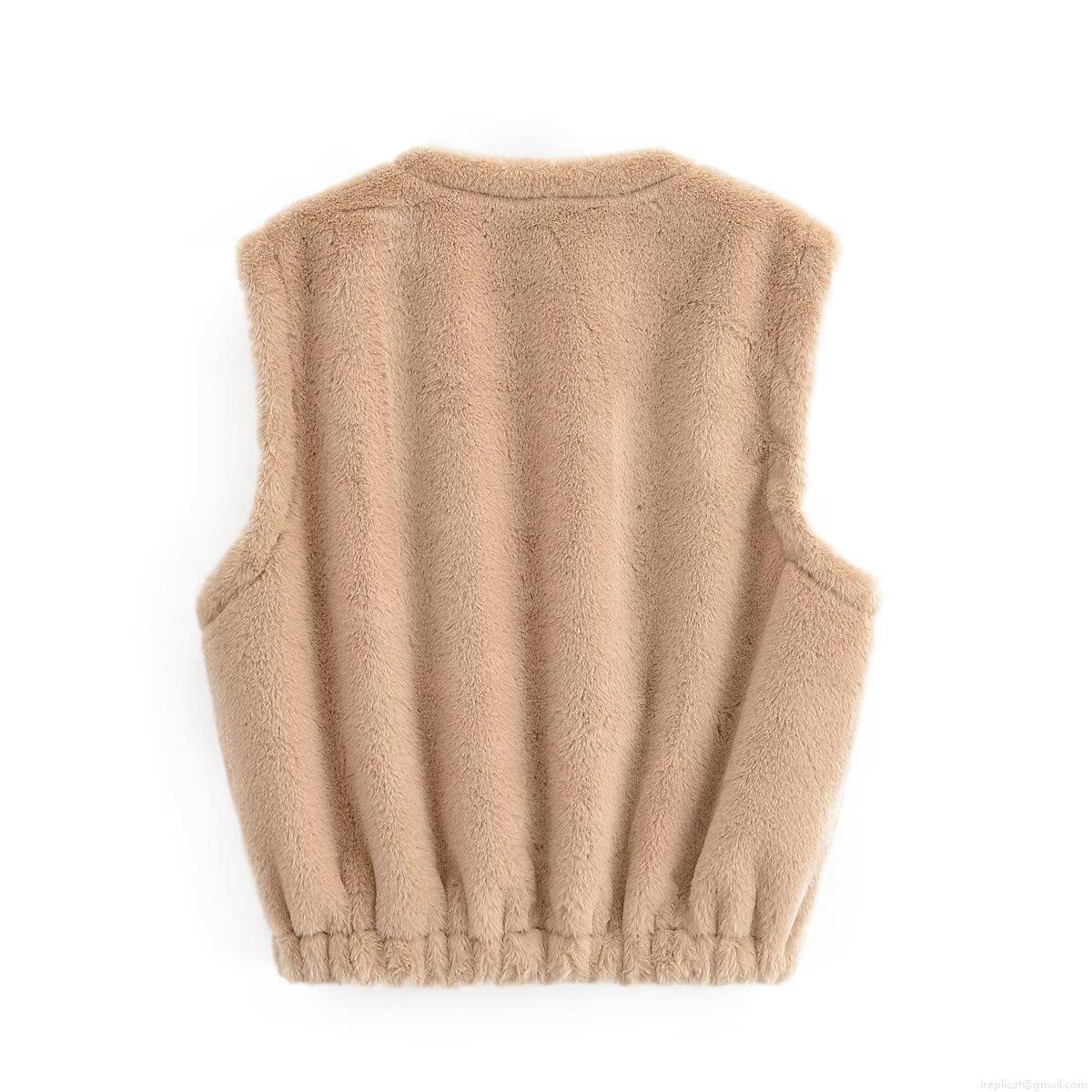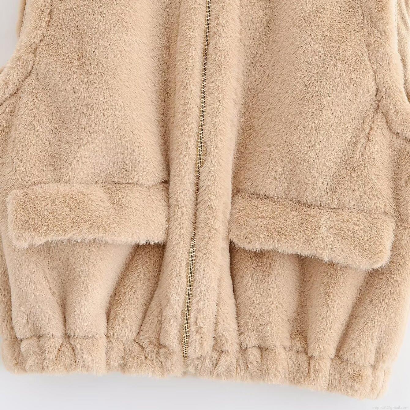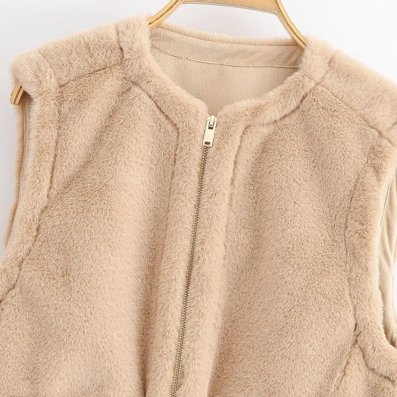 • Women's Casual Faux Fur Vest Round Neck Sleeveless Zip Up Waistcoat Warm Winter Solid Color Plush Outerwear Jacket For Ladies