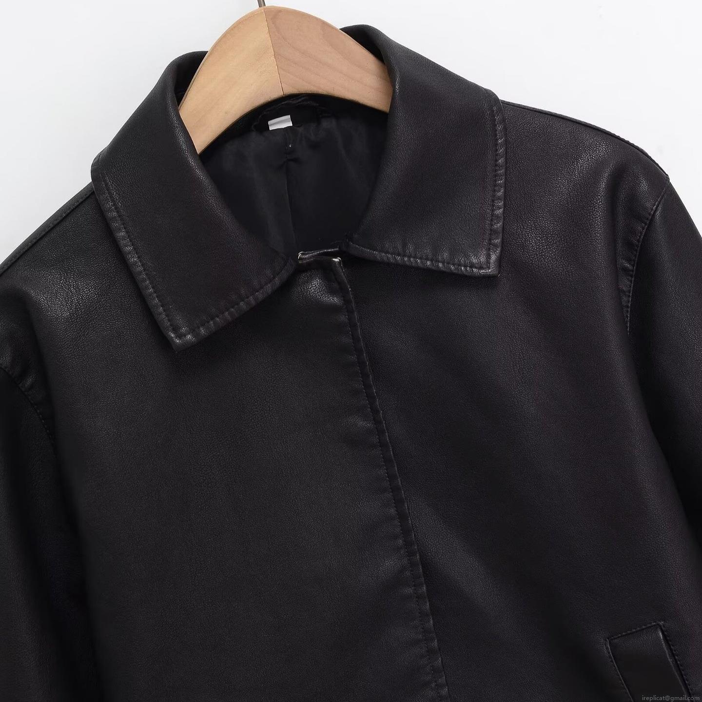 • Women's Casual Faux Leather Jacket Fashion Lapel Long Sleeve Solid Black Zip Up Short Moto Biker Coat Outerwear for Women Autumn Winter Daily Streetwear
