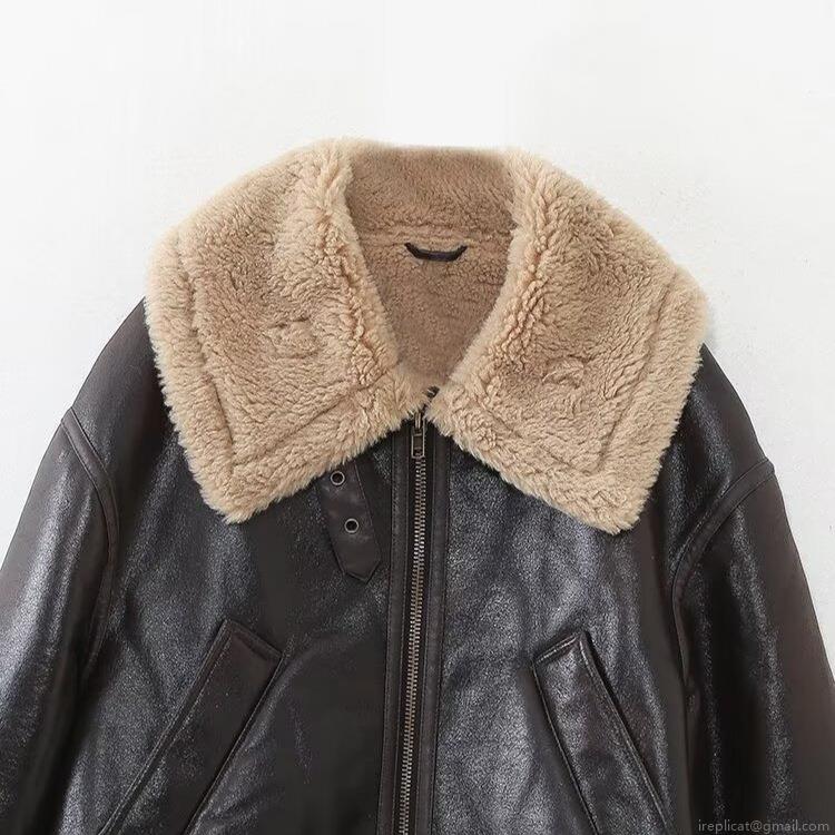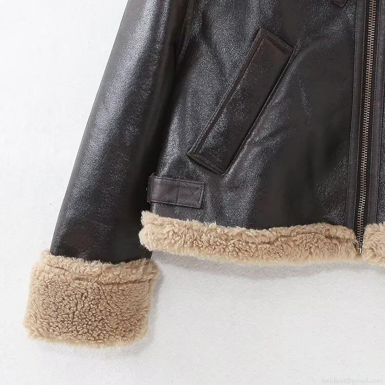 Women's Casual Faux Leather Shearling Moto Jacket Oversized Warm Faux Fur Lined Autumn Winter Outerwear Coat Lapel Zipper Solid Dark Coffee Brown Jacket