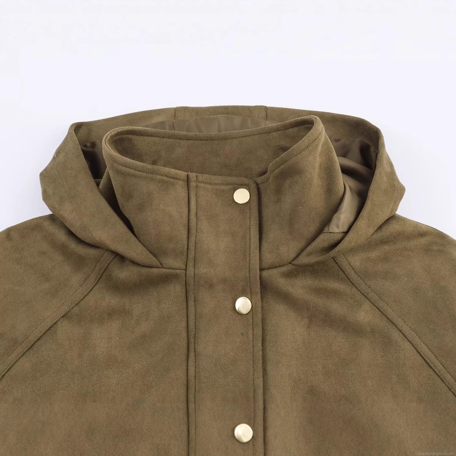 • Women's Casual Faux Suede Hooded Jacket Solid Color Long Sleeve Outerwear With Drawstring Hem And Pockets Zip Up Jackets For Women Streetwear