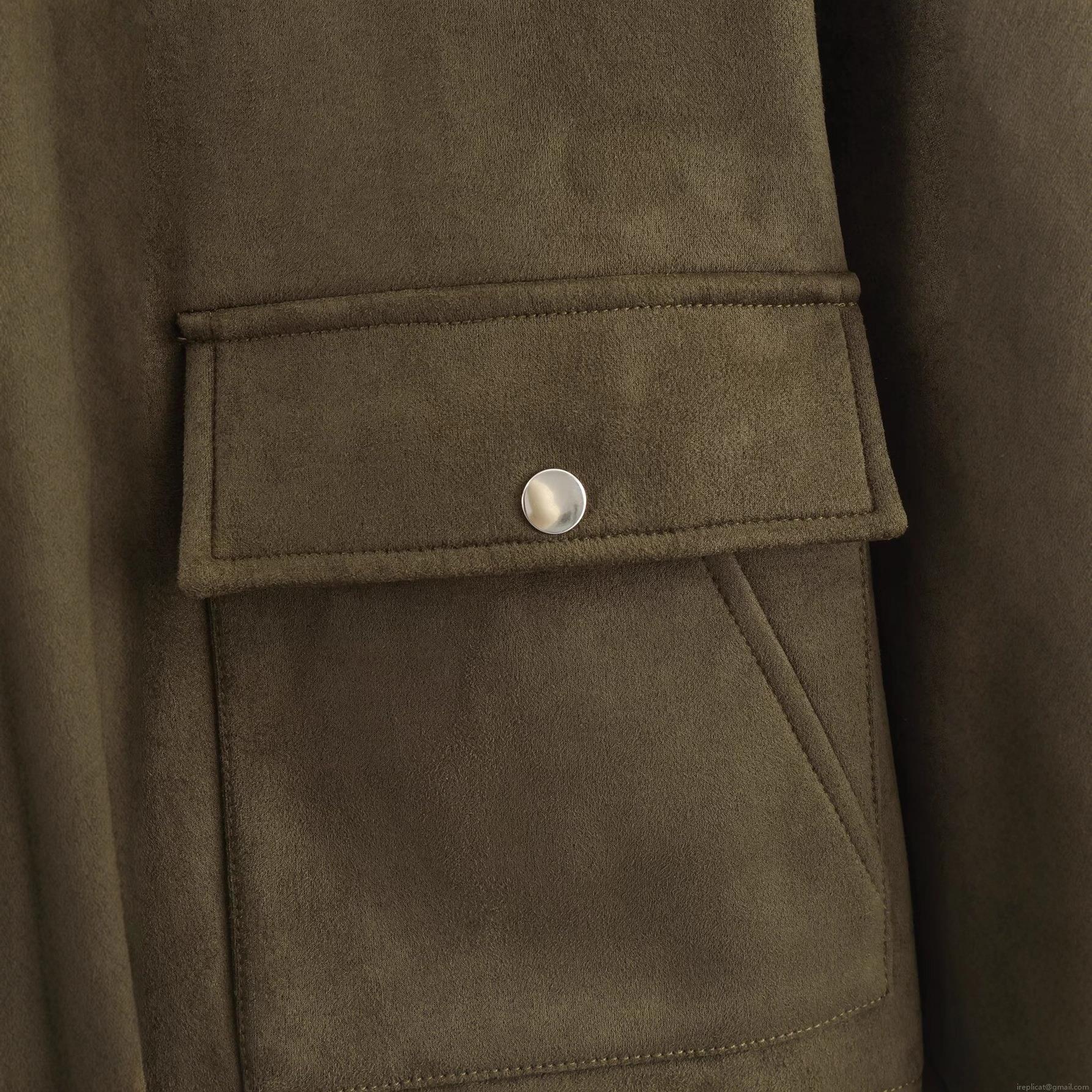 Women's Casual Faux Suede Jacket Cargo Pockets Lapel Long Sleeve Zipper Short Outerwear Coat Streetwear Fashion Polyester Fabric Suede Coat