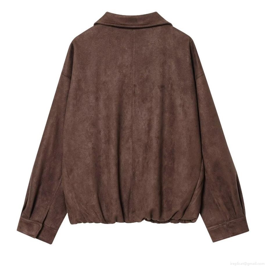 • Women's Casual Faux Suede Jacket Retro Turn-down Collar Loose Fit Zipper Coat With Pockets Solid Color Long Sleeve Outerwear For Women