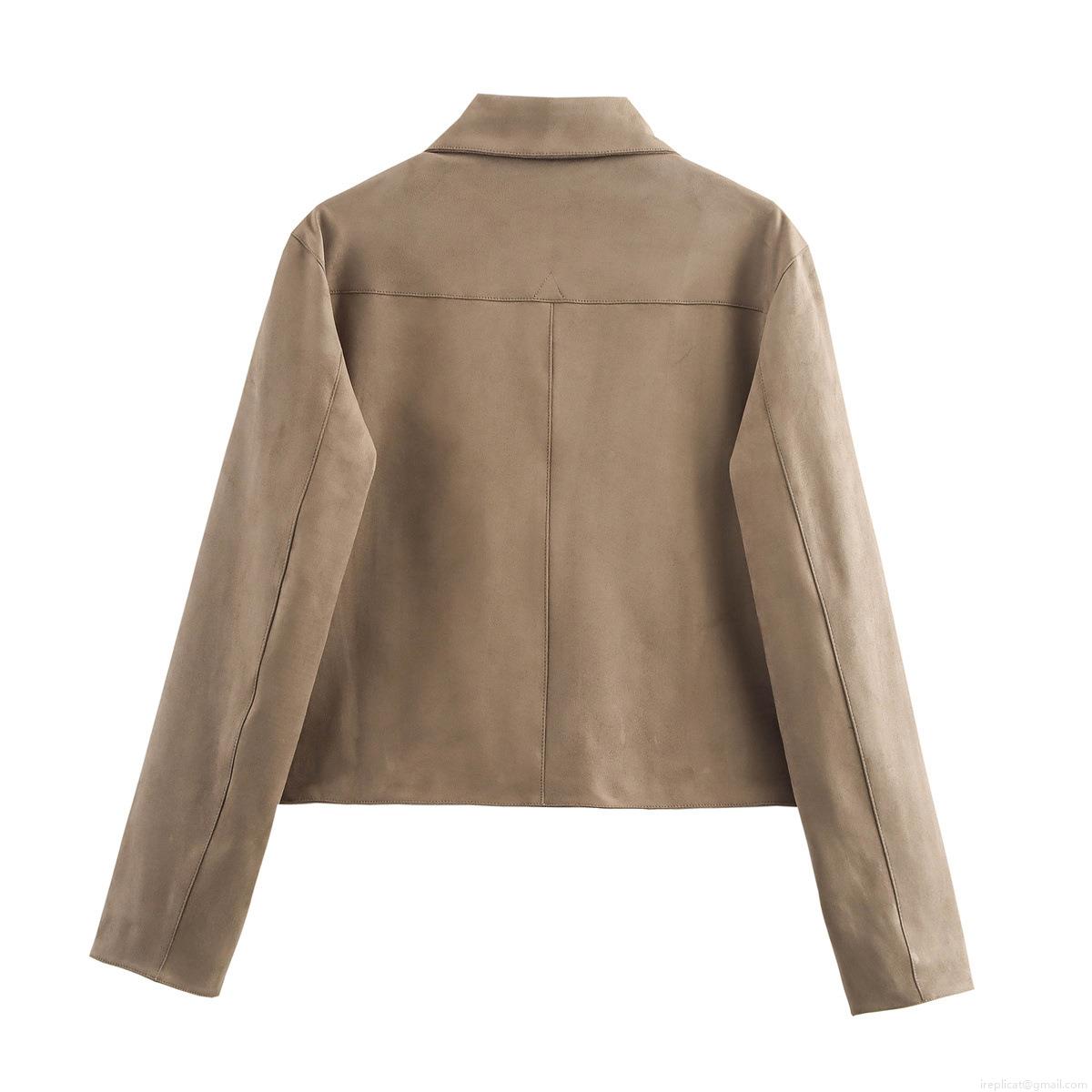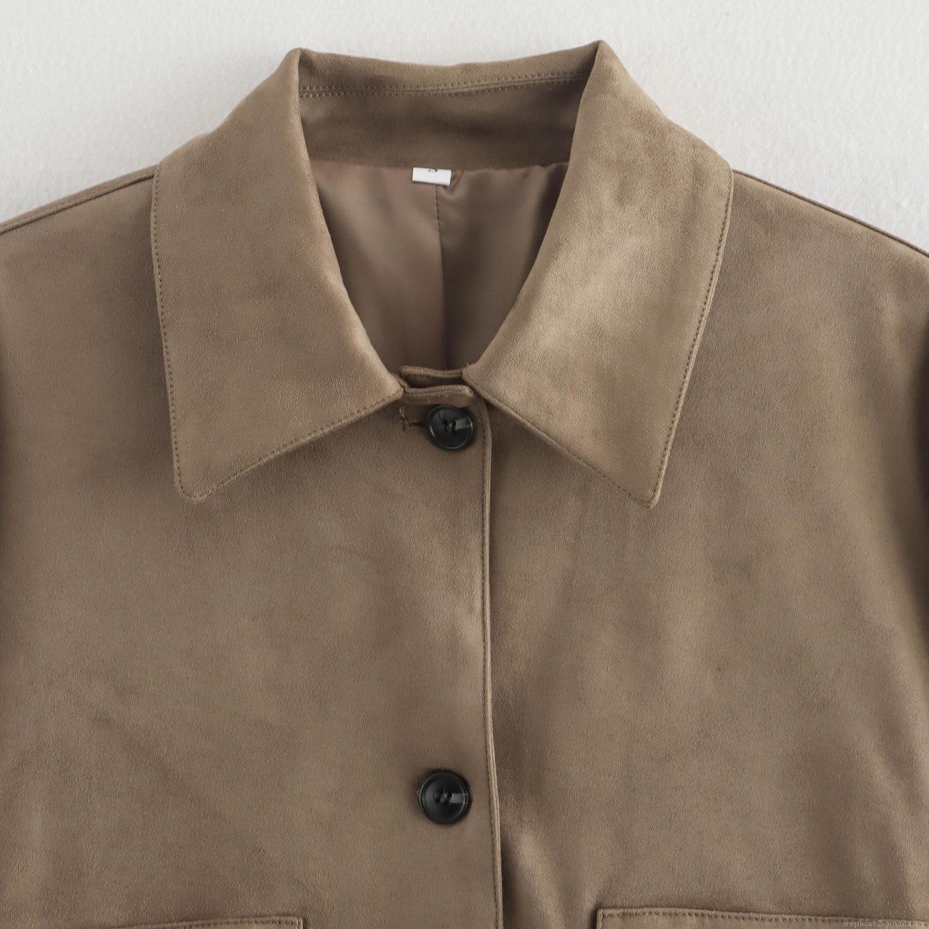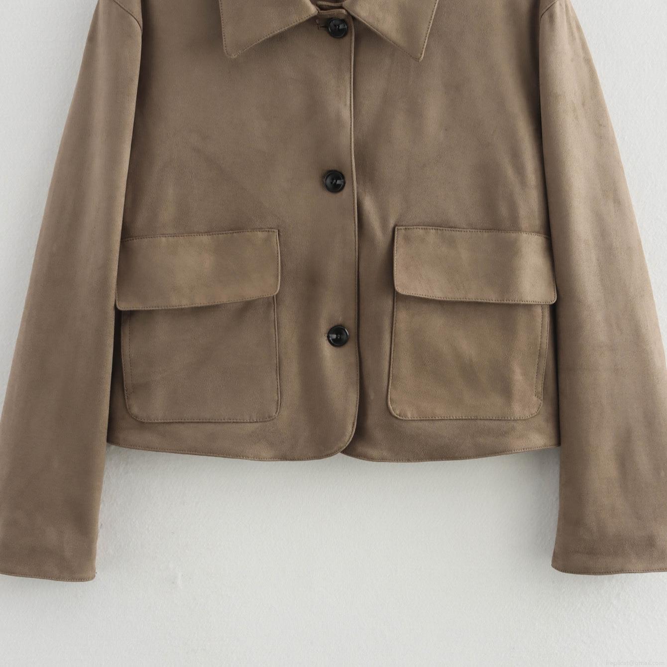 • Women's Casual Faux Suede Jacket Solid Color Lapel Single Breasted Autumn Short Coat With Two Pockets Long Sleeve Soft Outwear For Daily Commuting