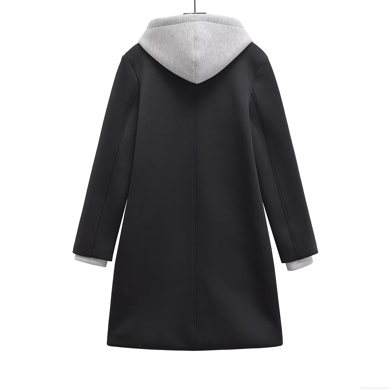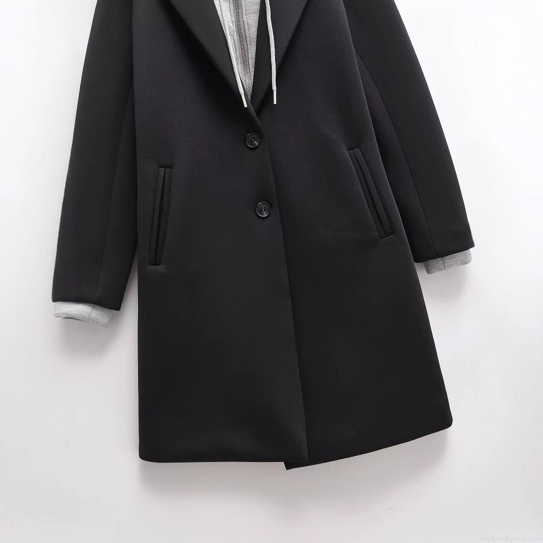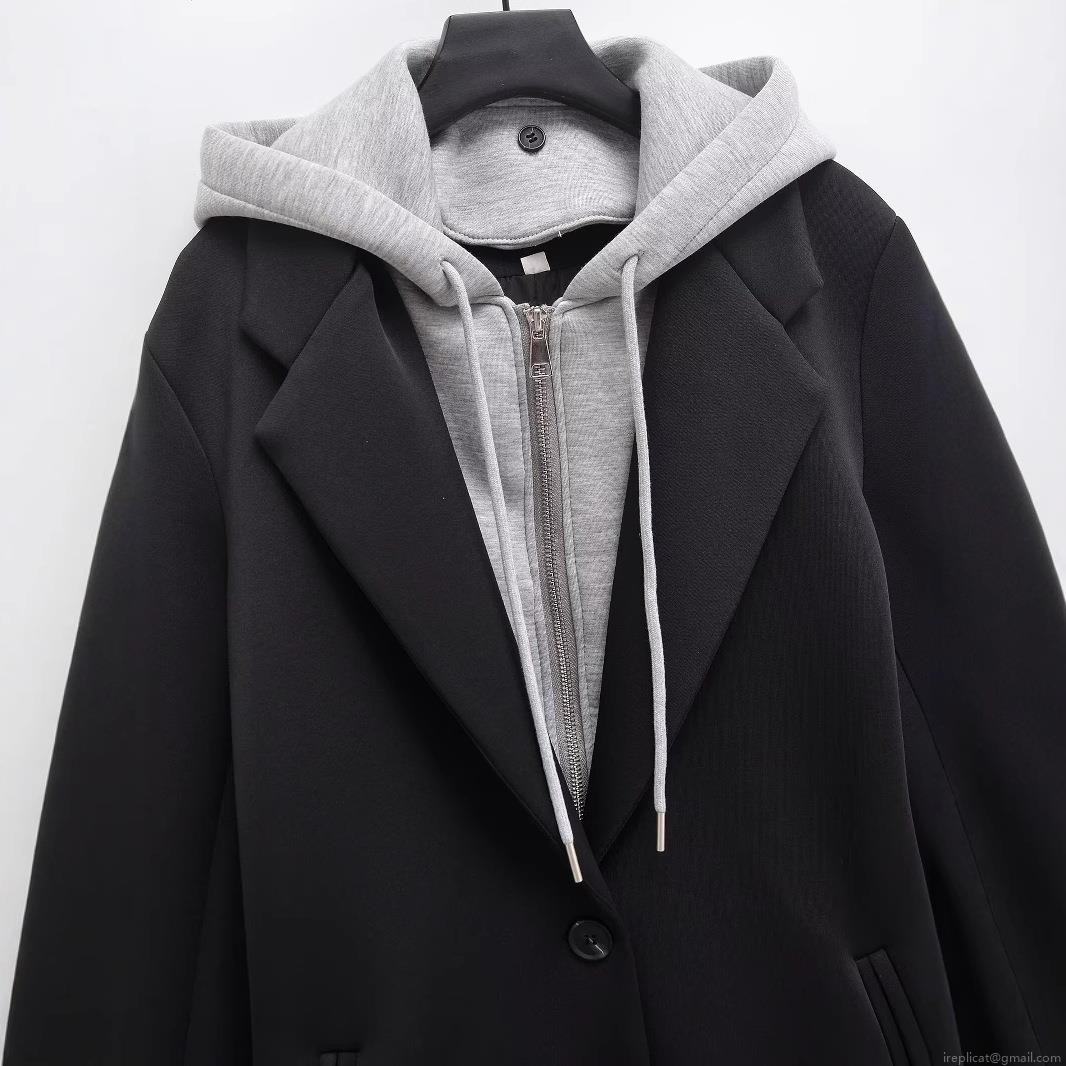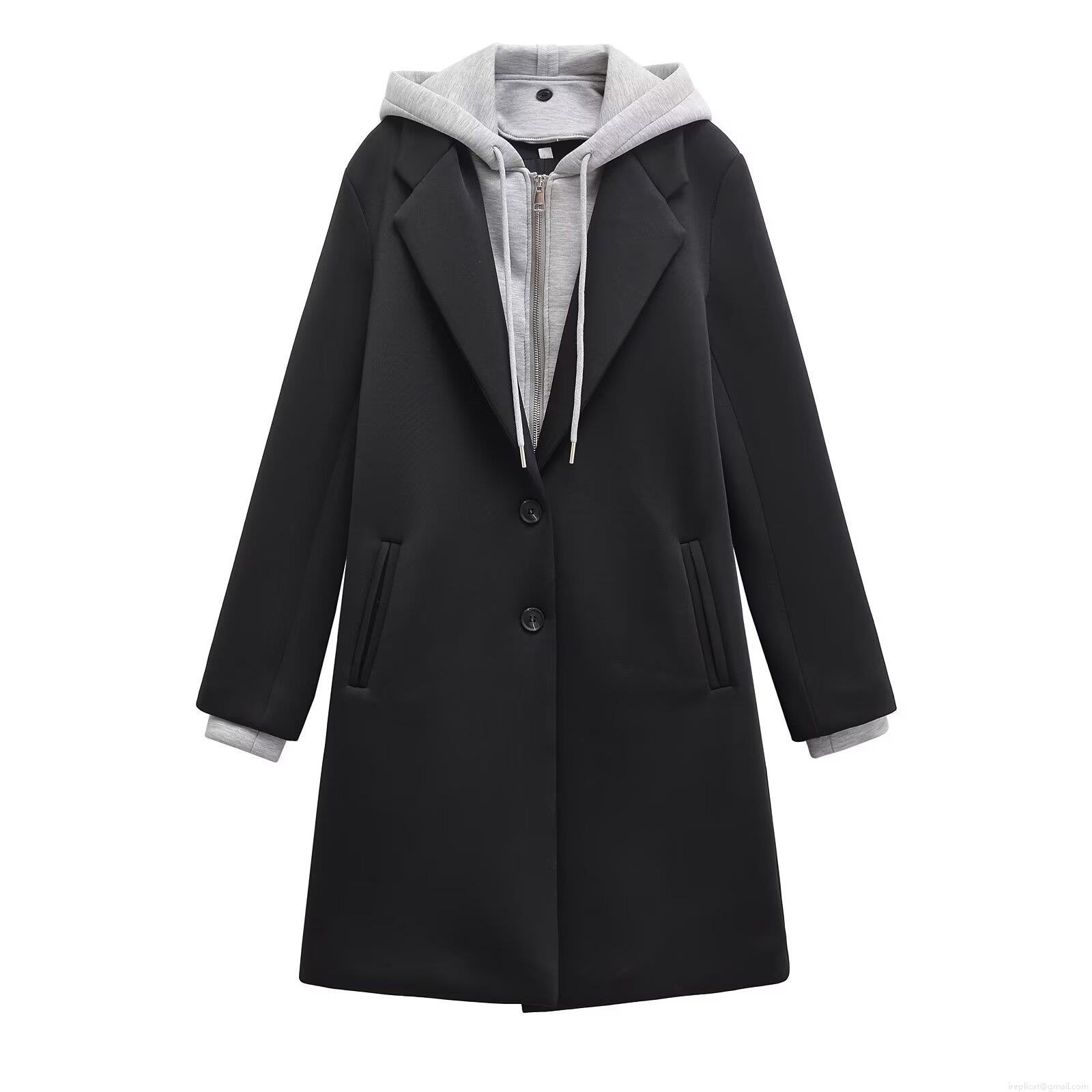 • Women's Casual Hooded Long Sleeve Coat Detachable Fake Two-Piece Single Breasted Jacket Patchwork Imitation Woolen Overcoat With Pockets