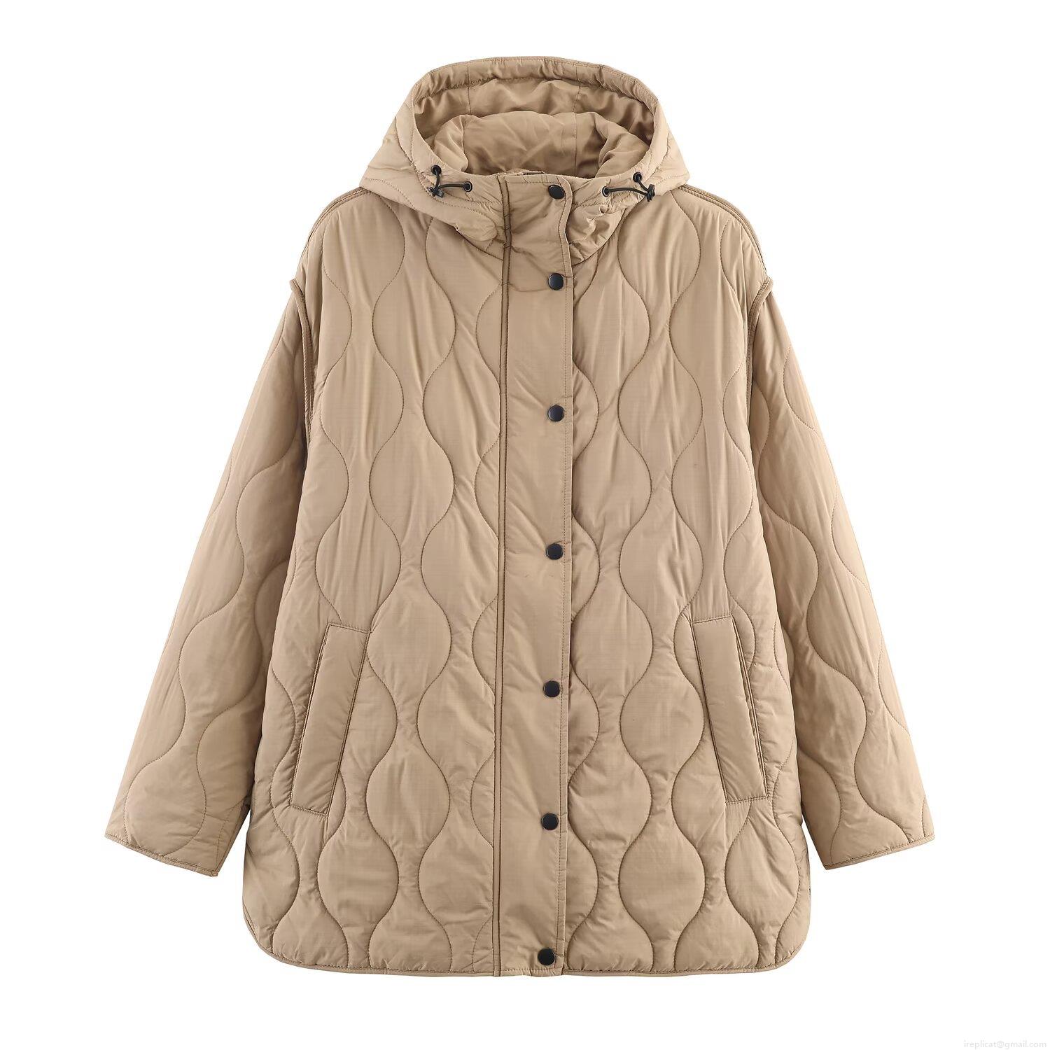 • Women's Casual Hooded Quilted Jacket Ripstop Polyester Fiber Padded Coat With Metal Buttons For Daily Streetwear Outdoor Fashion Outwear
